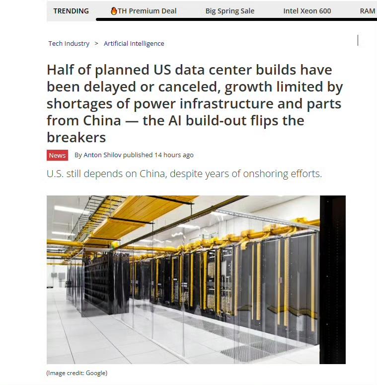 有点看不懂了,如今究竟是谁在卡谁的脖子? 据美媒报道,原计划中的众多超算中心,至少一大半无法建设或已取消。原因竟是电力基础配套不足以及来自中国的关键零部件短缺。 真没想到,果真被咱们网友说中了。当年那句“等我们解决了光刻机与芯片,美国可能会发现他们自己缺乏的东西更多”,现在看来真是神预言,多年后一语中的。 看来即便美国能开启无限量的美元印钞机,很多事情依旧无法解决。