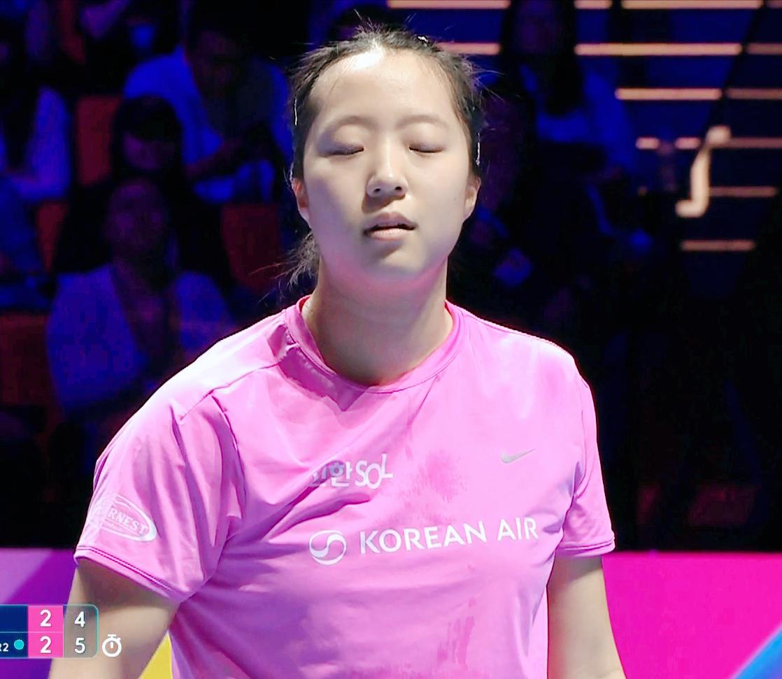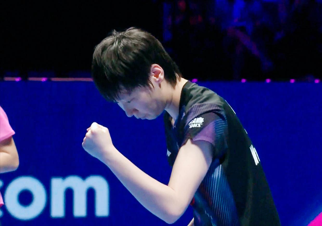 侯英超心疼的喊:王曼昱非常累,一定要用意志扛住。 昨天鳗鱼和桥本帆乃香打到了数板子, 今天和申裕斌全是长相持, 把鳗鱼累坏了! 前四局 两人打成了2:2平。 第五局 申裕斌3:1开局, 王曼昱还是用反手发球, 申裕斌连续吃球, 王曼昱7:4反超。 10:7拿到局点, 11;7拿下。 鳗鱼的反手发球立功了。