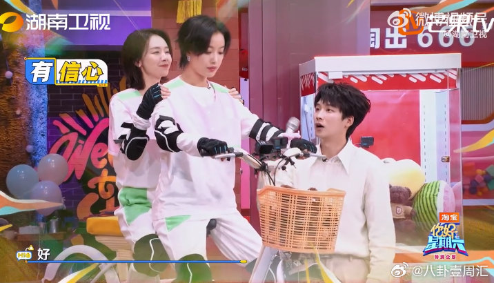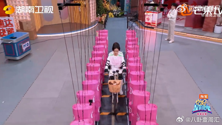 倪妮稳稳的很让人安心 你好星期六 骑车过桶阵挑战,倪妮淡定上线!凭借超强平衡感和
