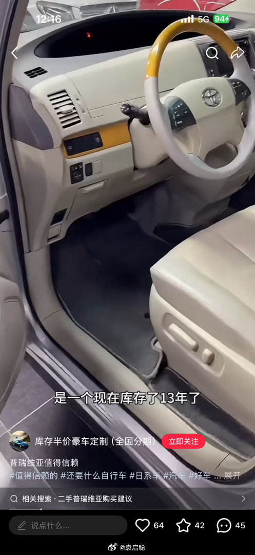 真的0公里库存了13年的车,手续早就废了,还上个毛线牌?还有,这个车方向盘包皮都换了,没有跑20万+公里我一口吃一只2头鲍;座椅皮革一眼喷漆翻新过,0公里?被鬼压过啊