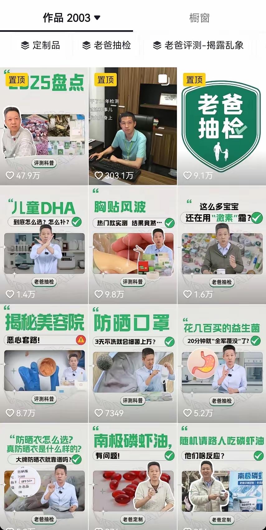 “老爸评测”全网粉丝超 5400 万,打着“测评”“找机构检测”的旗号带货各种产品。