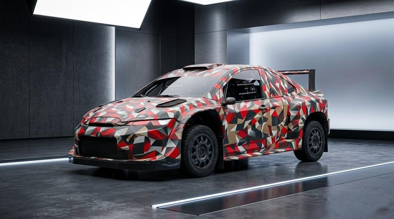这款身批Gazoo Racing传统伪装的原型车尺寸紧凑、轴距较短,但它呈现出明显的三厢造型,搭配宽体轮拱延伸、水平布局头灯、通风引擎盖、车顶进气口以及方正的大尾翼。