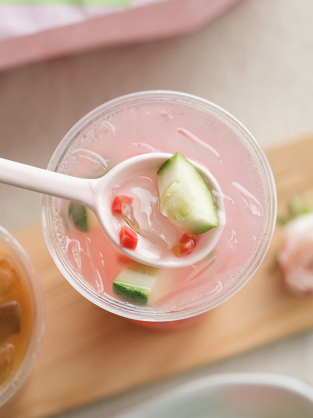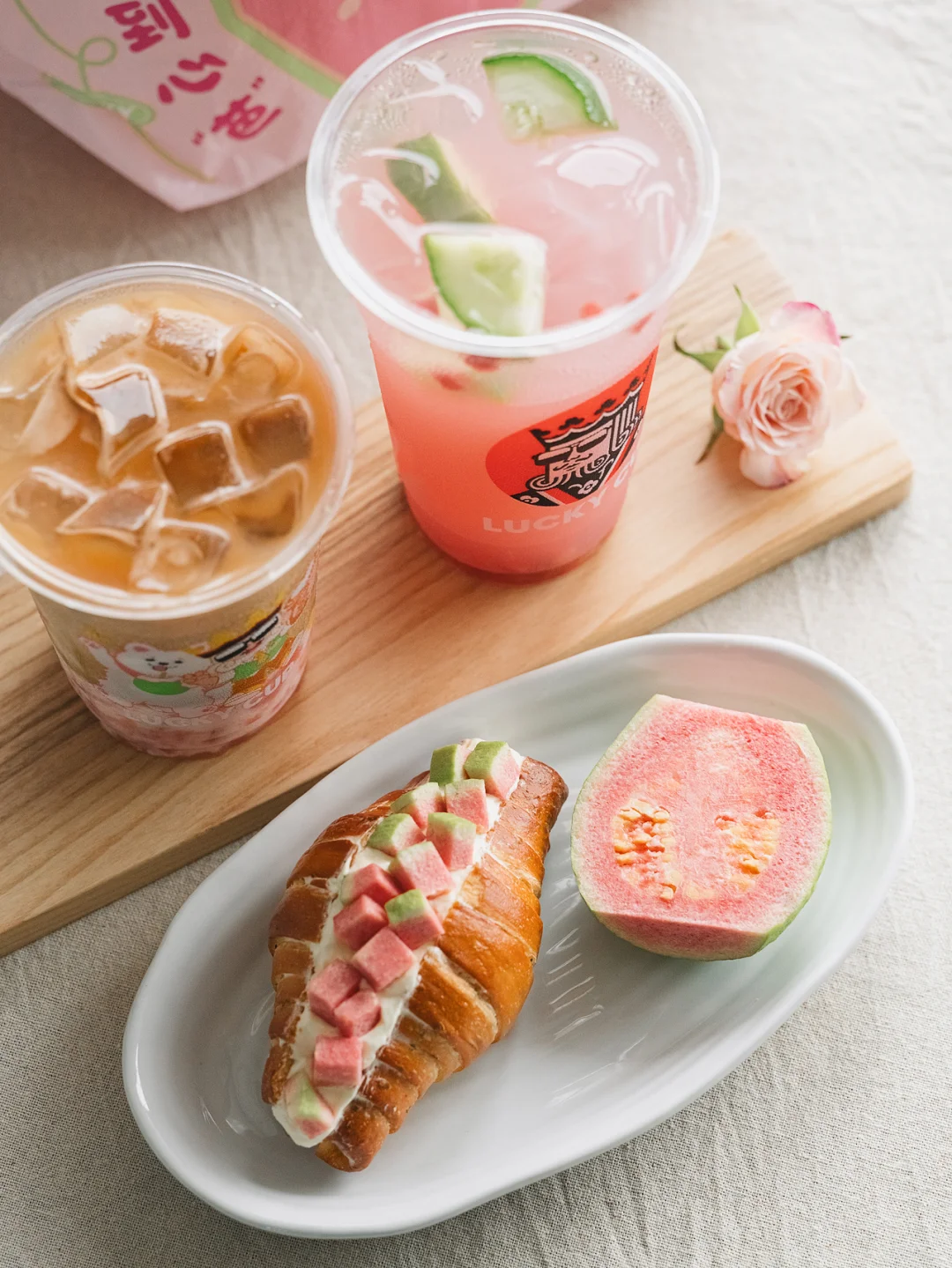 泰国香水椰和芭乐果肉营造满满热带风情,加入绵密丝滑的中国抹茶,粉绿色的交融化成了春日的浪漫,口感丰富又出片