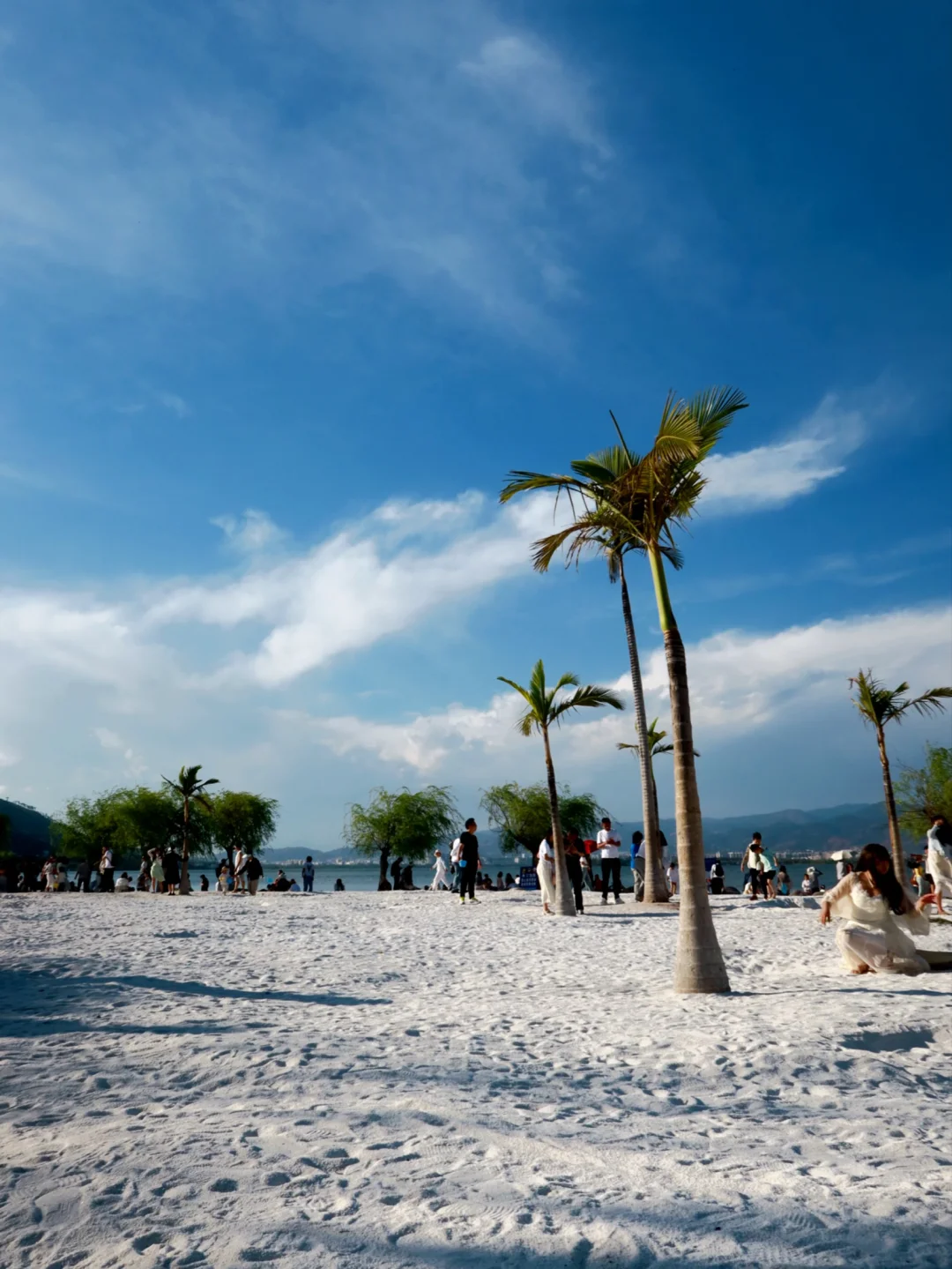 细软的白沙、澄澈的邛海、摇曳的棕榈树,阳光洒在湖面闪着碎金,随手一拍都是度假感大片📸