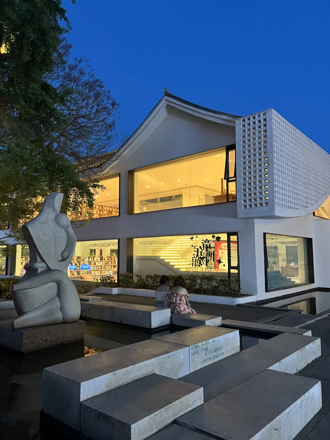 白墙黛瓦的建筑藏在山林间,众美术馆、儿童博物馆错落有致,还有超出片的螺旋楼梯、艺术雕塑,随手一拍都是高级感。