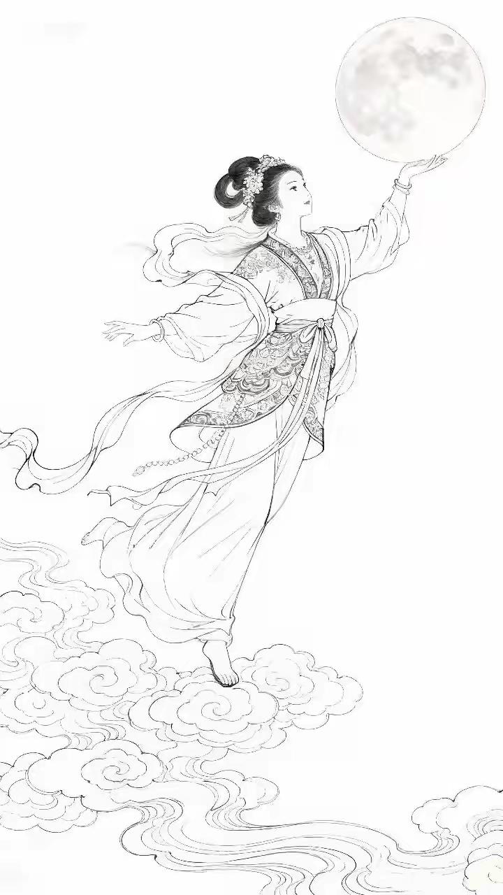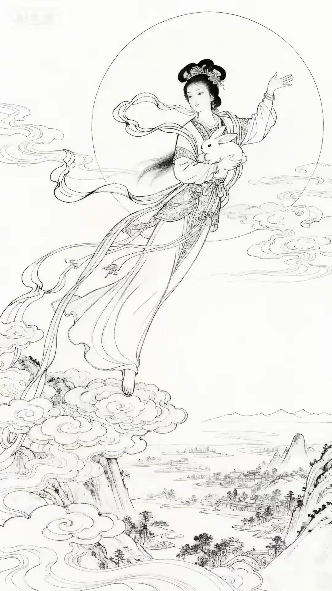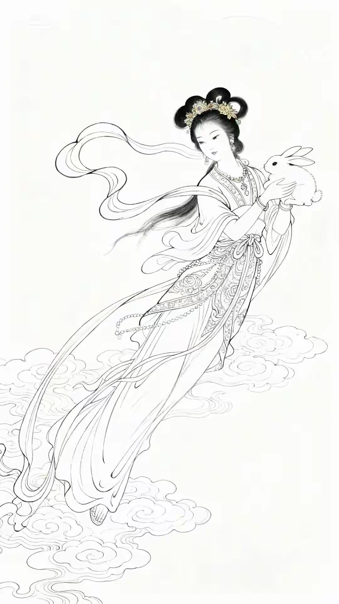 素材|嫦娥(附白描) 绘画 素材