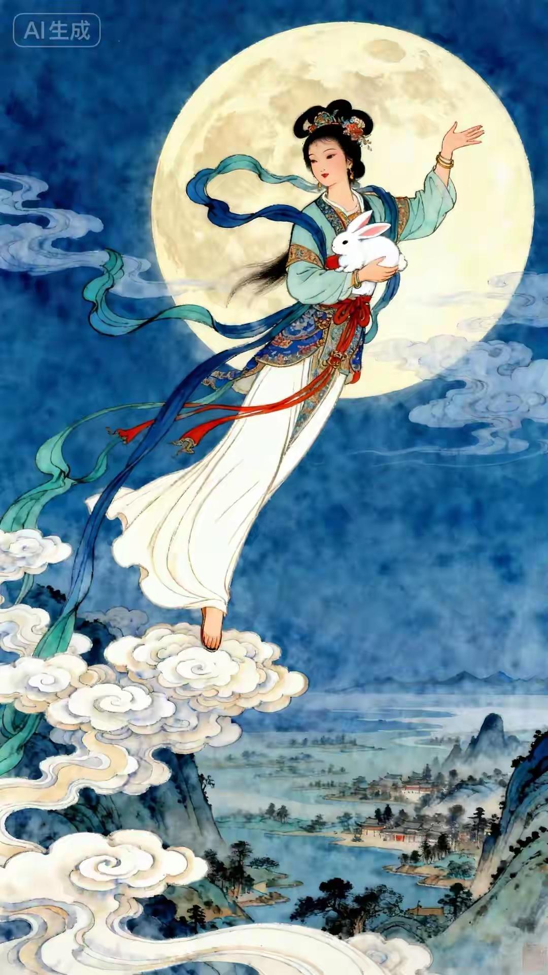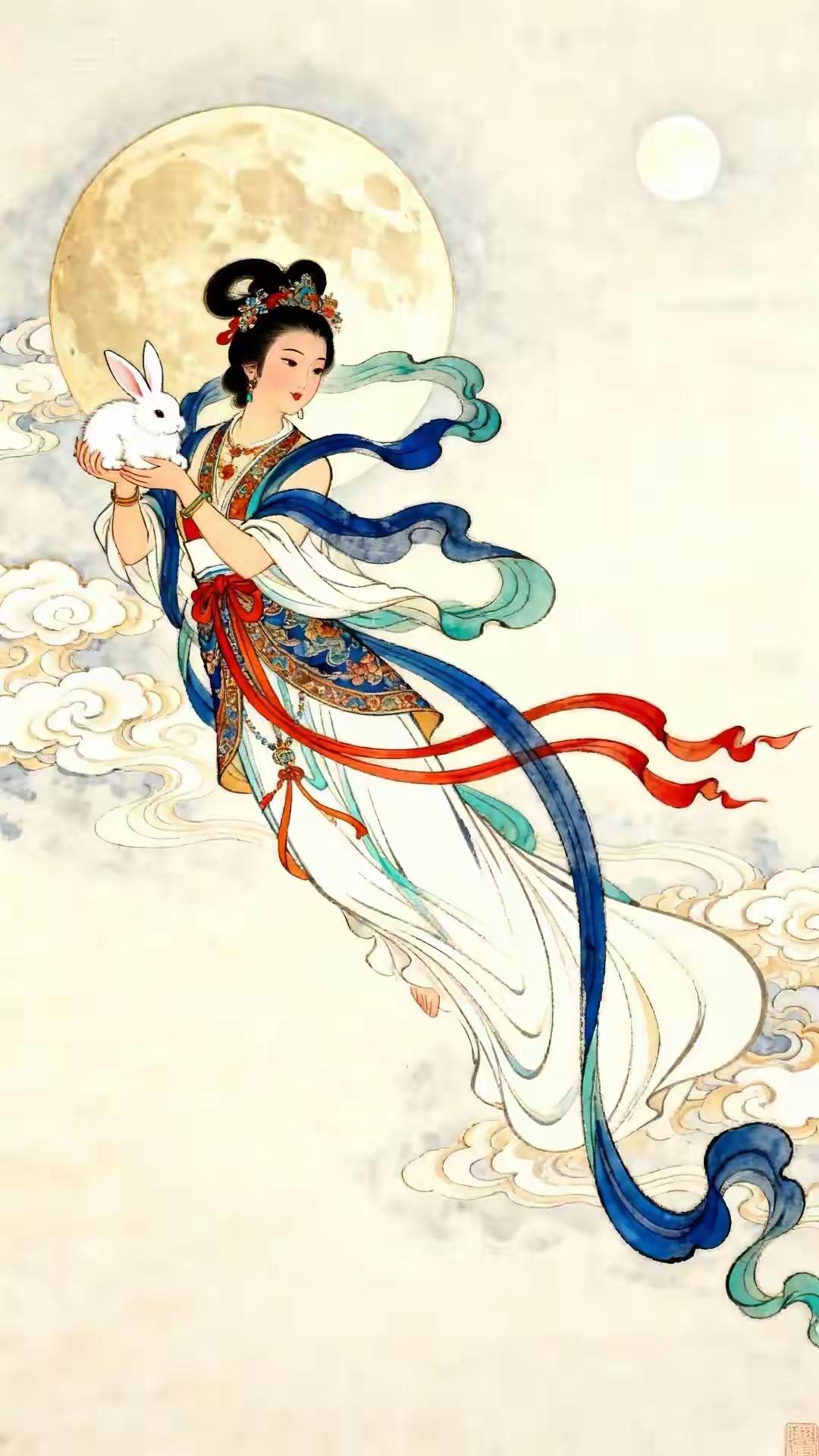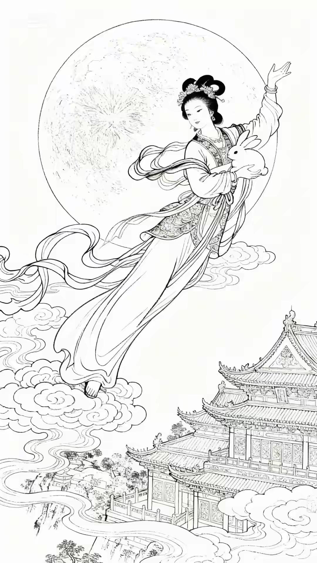 素材|嫦娥(附白描) 绘画 素材