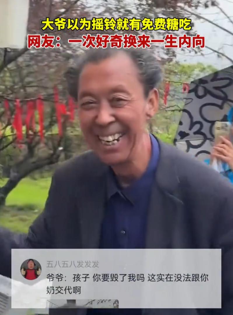 一次好奇换来一声内向!江西,一位大爷去景区游玩,经过一处景点时,以为摇一下窗口的铃铛,就有人送糖吃,万万没想到,一名男NPC叼着一根棒棒糖就来投喂,一下把大爷的尴尬的满脸憋红 视频中,大爷走到一个互动体验类的景点,墙上有个小窗口,窗口旁边挂着个铃铛。大爷瞅了一眼,琢磨着这玩意儿应该是摇一下,里头的人听见了,就会递块糖出来。就是那种老式甜铺或者古装剧里常见的讨糖场景 大爷心里还挺美,想着体验一把童趣,顺手扯了一下铃铛 叮当一响,大爷就笑眯眯地在窗口等着,脸上写满了期待。窗户里先是伸出一只手,冲他招呼了两下,大爷更乐呵了,往前凑了凑。结果窗口探出身子来的,不是什么扎着辫子的姑娘,而是一个打扮干净清秀的男工作人员 这位小哥嘴里叼着一根棒棒糖,直接朝着大爷的嘴就喂过来了 大爷当场就懵了。那种感觉怎么说呢,就是你以为要重温童年,结果给你来了个综艺整蛊。棒棒糖都快戳到嘴唇了,大爷本能地往后一闪,连连摆手,脸唰地一下就红了。周围的游客笑得不行,大爷自己也跟着笑,但那笑容里明显带着一股子窘迫,耳朵根子都是红的 最后工作人员也收了玩笑,把棒棒糖从嘴里拿下来,大大方方递给了大爷。大爷接过去的时候,脸上的红还没退干净 有人把这一幕拍下来发到了网上,配了一句话:一次好奇换来一生内向 不得不说,好奇有时候真是一场冒险。你以为你在体验民俗,其实你在参加真人秀。大爷用一根棒棒糖换来了一个终身难忘的教训:下次看见铃铛,先看清楚窗口里伸出来的是手还是别的什么