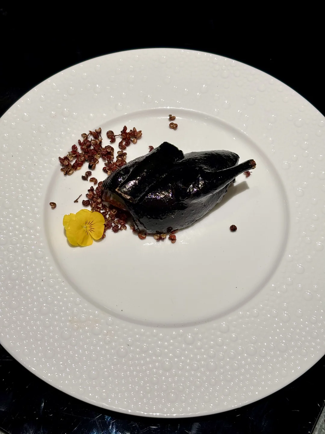 ✅黑金脆皮乳鸽:外皮酥脆到掉渣,内里汁水丰盈,黑金造型贵气十足