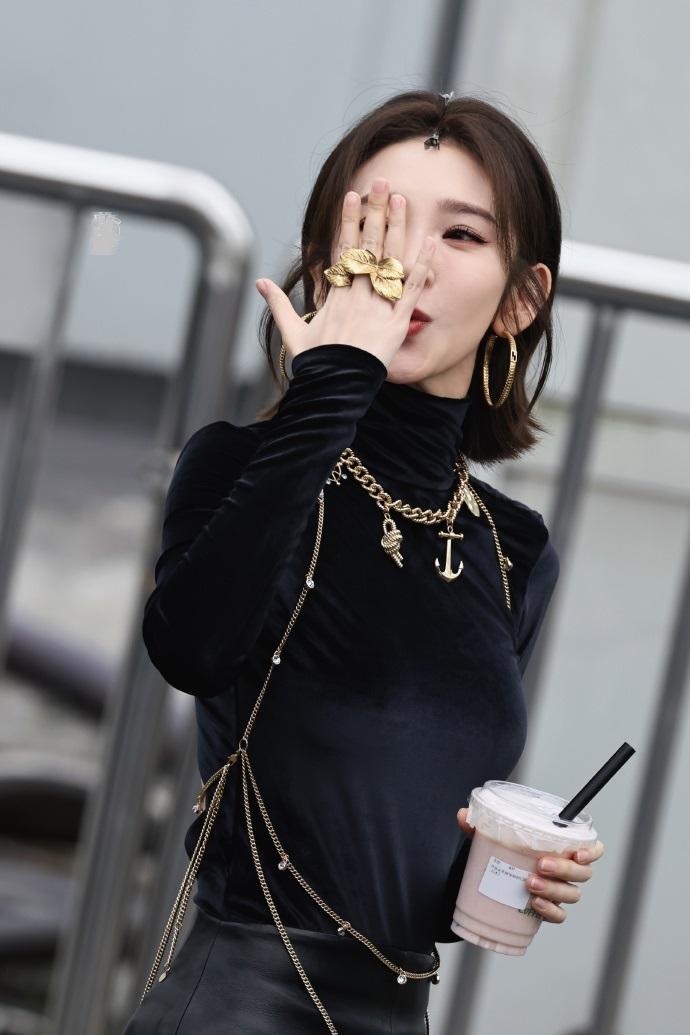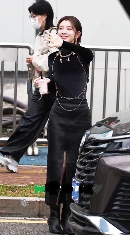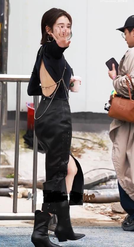 今天唐艺昕在录制浪姐的时候穿了一身黑色的衣服,整个显得很酷,也非常的有气势。 唐艺昕上身穿黑色紧身长袖衫,下身搭配黑色皮裙,让她展现出了很好的身材比例。 她这回大秀细腰,还秀出了完美的身材曲线,尽显高贵之美。 唐艺昕脚踩黑色的尖头高跟鞋,彰显出了满满的犀利感,确实是特别的有时尚魅力。 她脖子上戴上银色的项链,增添了奢华感,还非常的有潮流感,效果特别的好。