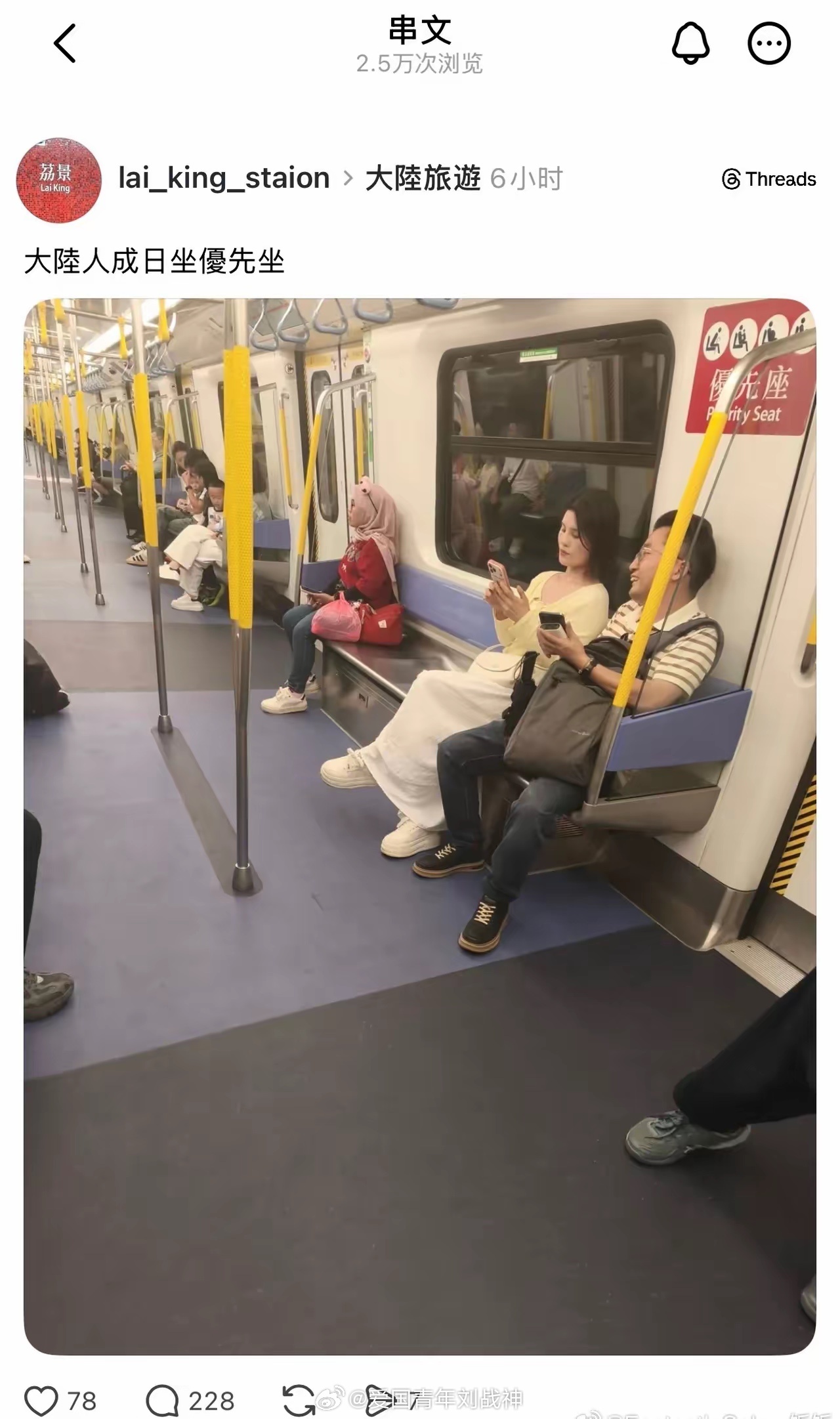 香港一网友吐槽大陆人坐“优先座” ……