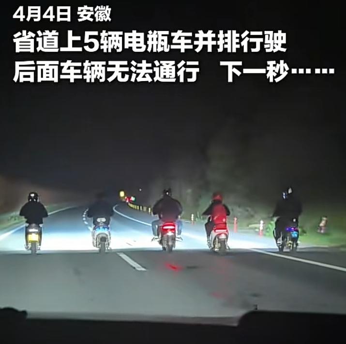 4月4日在安徽省道上五名意气风发的少年骑着电瓶车并驾齐驱,导致后面车辆无法直接通行,而他们完全没有意识到此行为的严重性,就在千钧一发之际一辆警车急速超车让其他车主悬着的心落了地。 很多时候遇到交警会下意识的躲开可真遇到一些不懂交通规则的人是不是希望交警能立刻出现,而这次出现的警车就像久旱逢甘霖的及时雨,迷茫航行的指路灯,他们的守护和指引看似严格,其实包含了深深的责任,五名少年应该非常感谢他们,如果是急速的货车后果不堪设想,感恩有你一路守护,那些巡逻在各地的交警同志辛苦了。