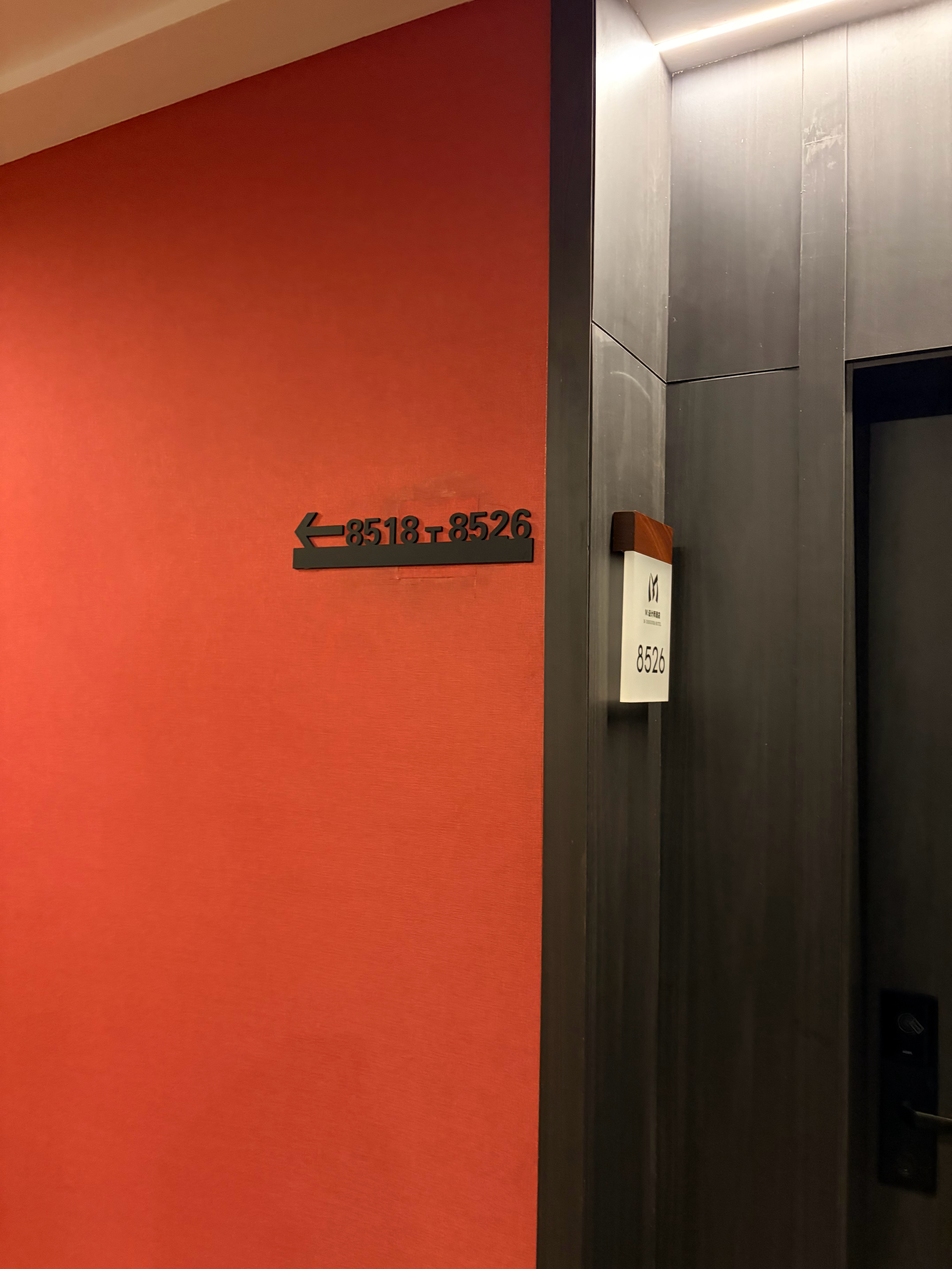 没见过这么蠢的指示牌,电梯出来左右两条走廊,分别给了两个指示牌,没其他指示牌了。我房间是 515,最后从图 2 往里面一个个找房间找到了,反正我从这完全看不出来有 515。