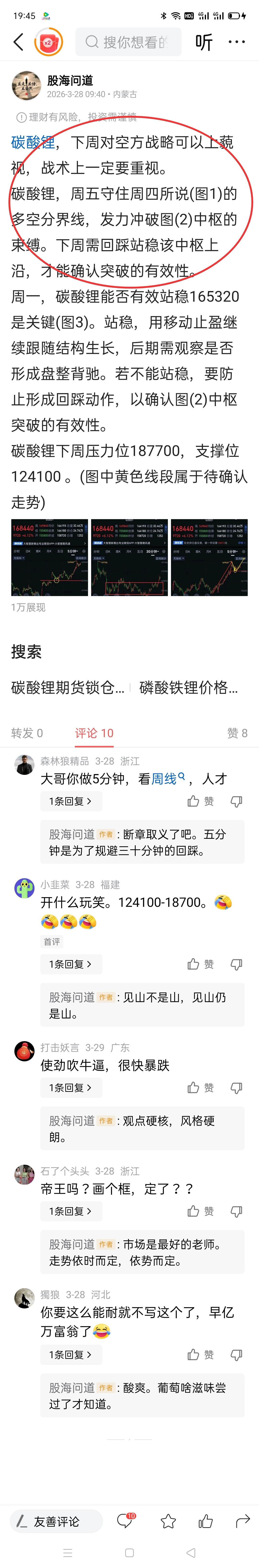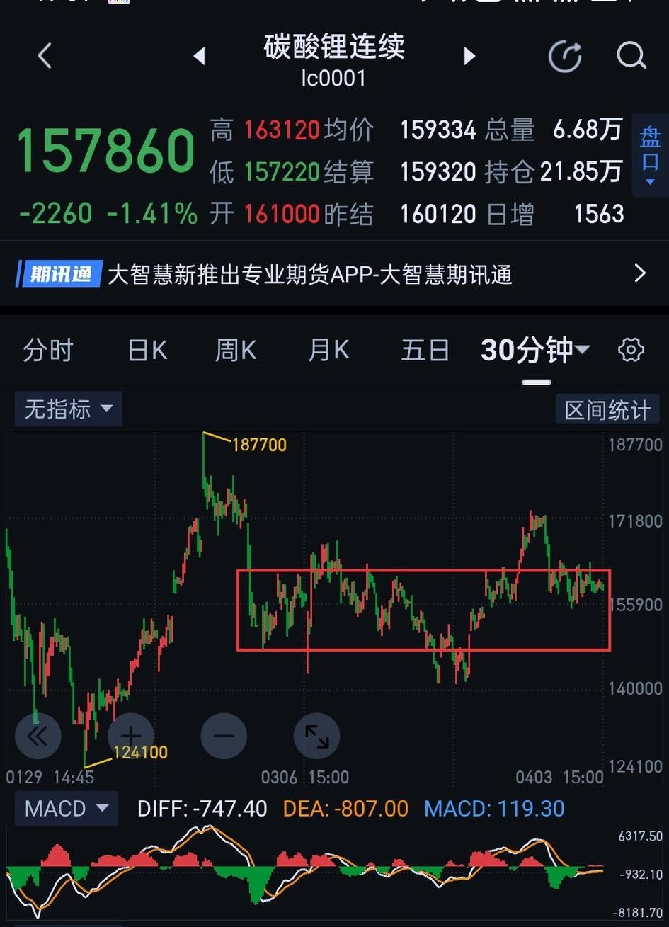 碳酸锂商品期货,已呈现阶段性头部特征。 碳酸锂日线(图1)走势呈逐渐收敛形态。多方对前高久攻不下,一旦心生懈怠,很容易遭到空方反噬。 上期碳酸锂周评(图2),所述需对图(3)中枢回踩站稳,方能确认突破有效。随后形成的回踩并未站稳图(3)中枢,短期又回归弱势格局。本周如不能快速站稳图(3)中枢上沿,要防止空方借势发难。 周二,碳酸锂多空博弈或见分晓。图(4)156580可视为短期多、空分界线。该点位能否有效站稳将是后续走势的关键。站稳,短期重回多方主场,后期需观察是否顺利冲过173000的阶段压力,后续能进一步化解图(1)头部风险。若156580不能站稳,空方将重新掌控主动权,不排除短期快速向140040附近滑落。 碳酸锂,当下要多一分清醒,少一分醉。目前结构要防止多方为掩饰撤退意图,故意设置多头陷阱。(图中黄色线段属于待确认走势)