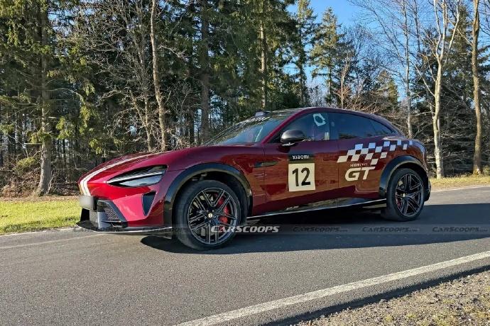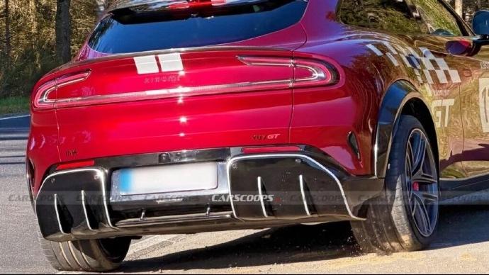这次Carscoops 曝光的是一台带有GT拉花酒红色的YU7 GT,红外红内+宽体,P Zero宽胎,搭配其醒目的前铲、更突出的后保扩散器以及巨大的刹车卡钳,整体造型极具攻击力。