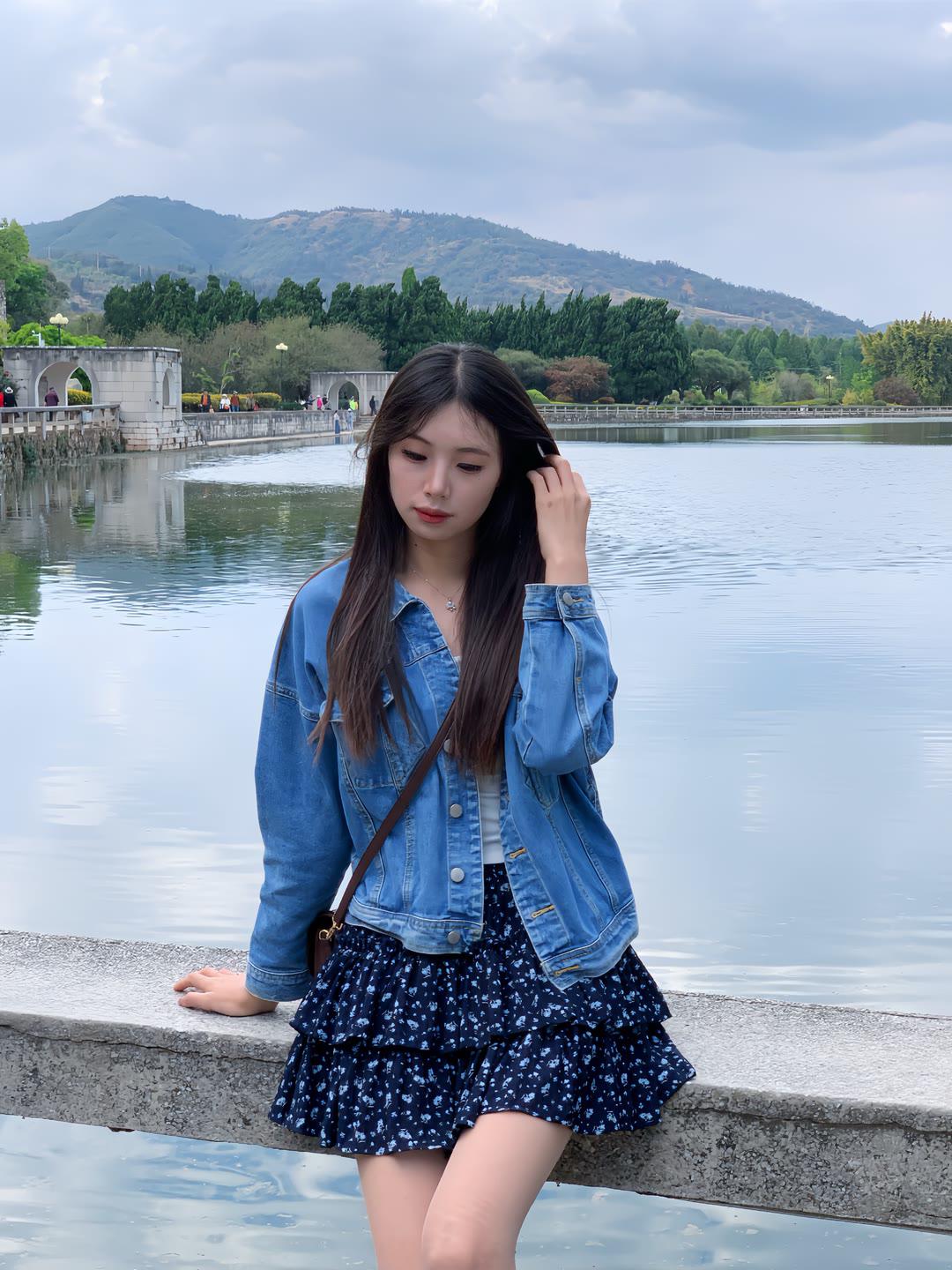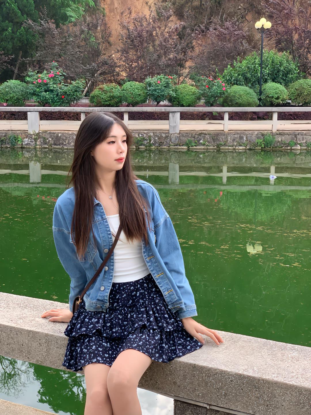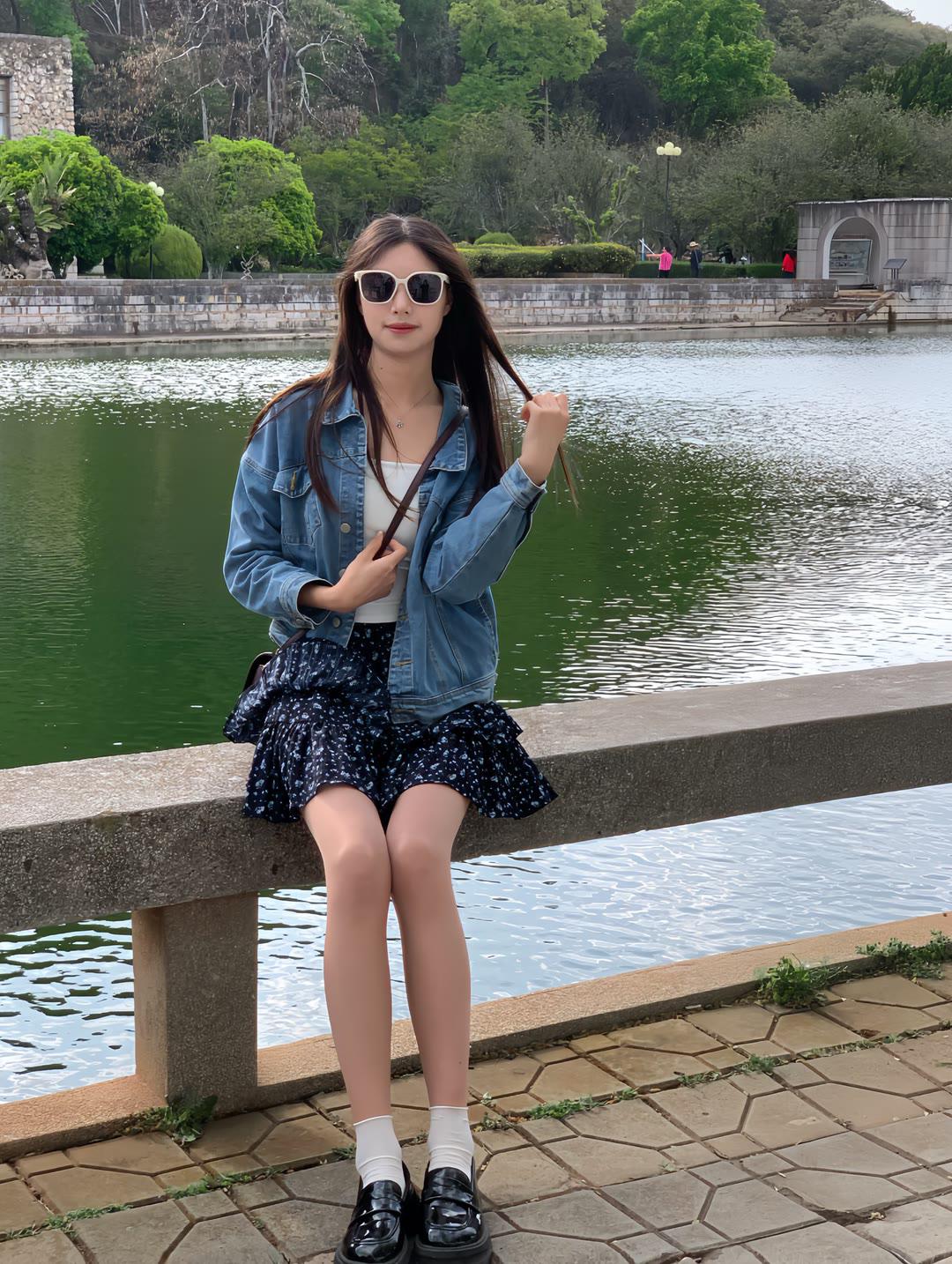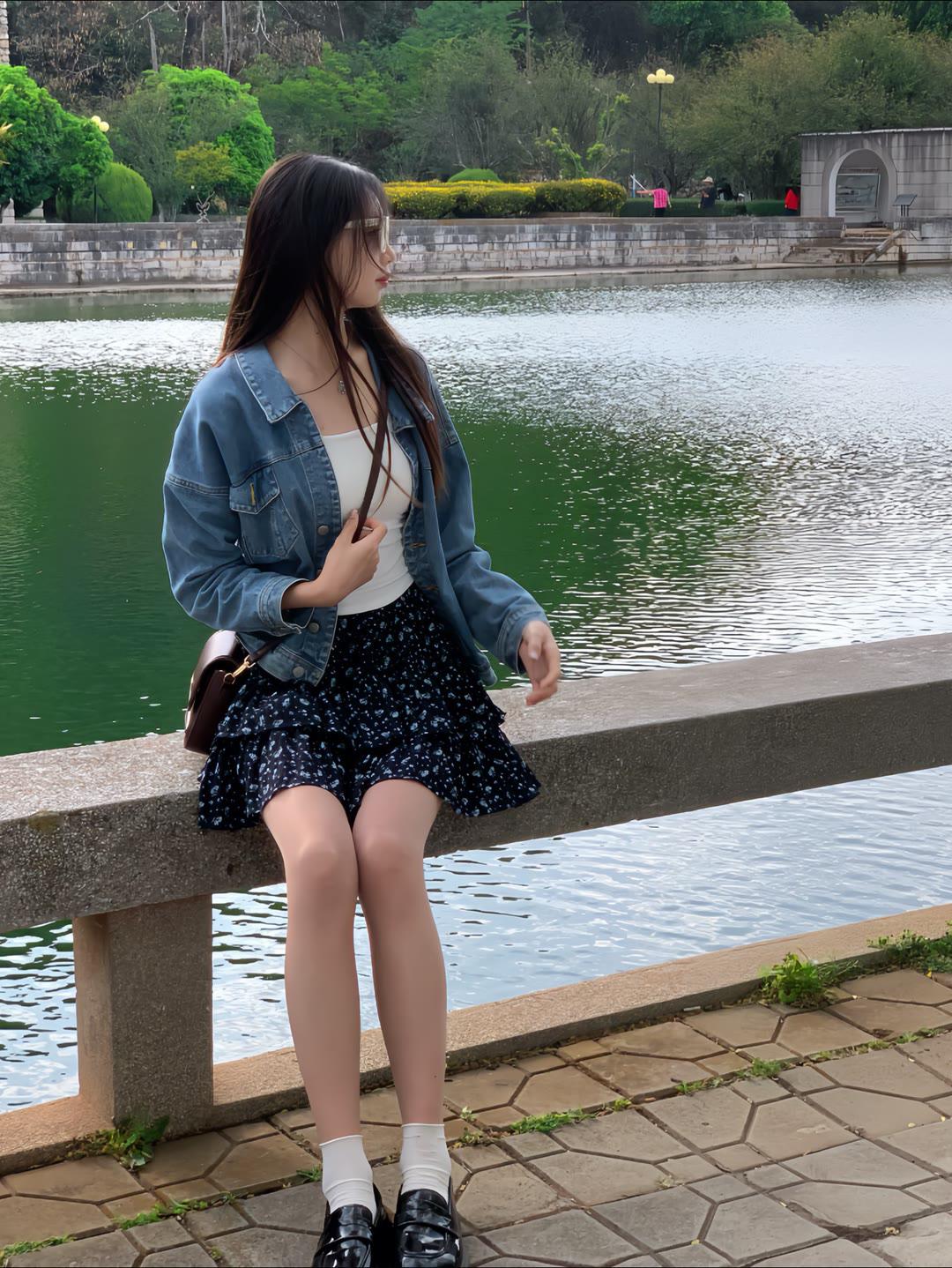 发现你的魅力白色蕾丝上衣搭配碎花短裙,尽显温柔甜美。银色高跟鞋提亮整体造型,