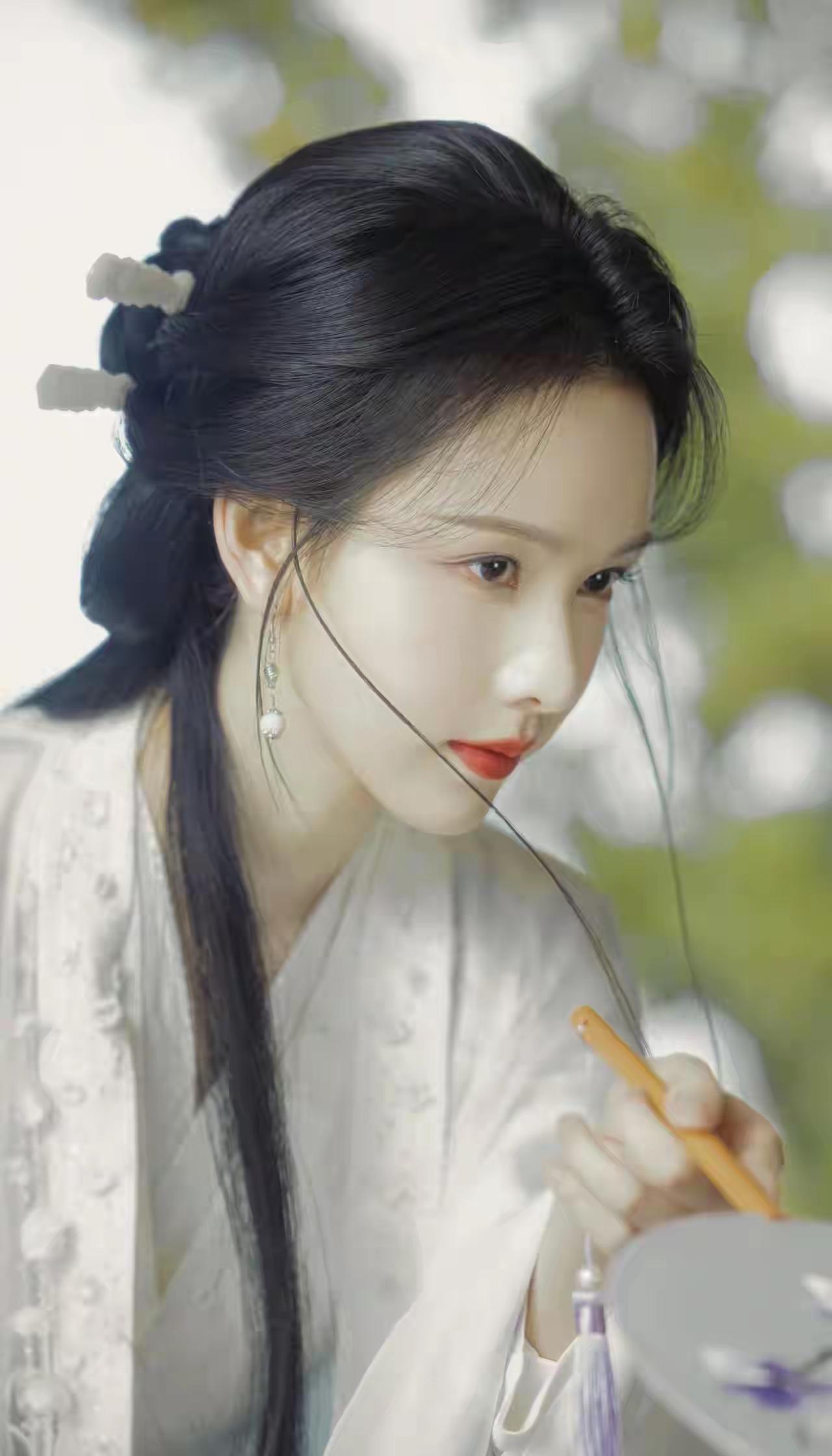 陈都灵,一袭白衣,半盏清欢,眉眼间是藏不住的东方诗意。 或执笔绘春,或轻纱遮面,