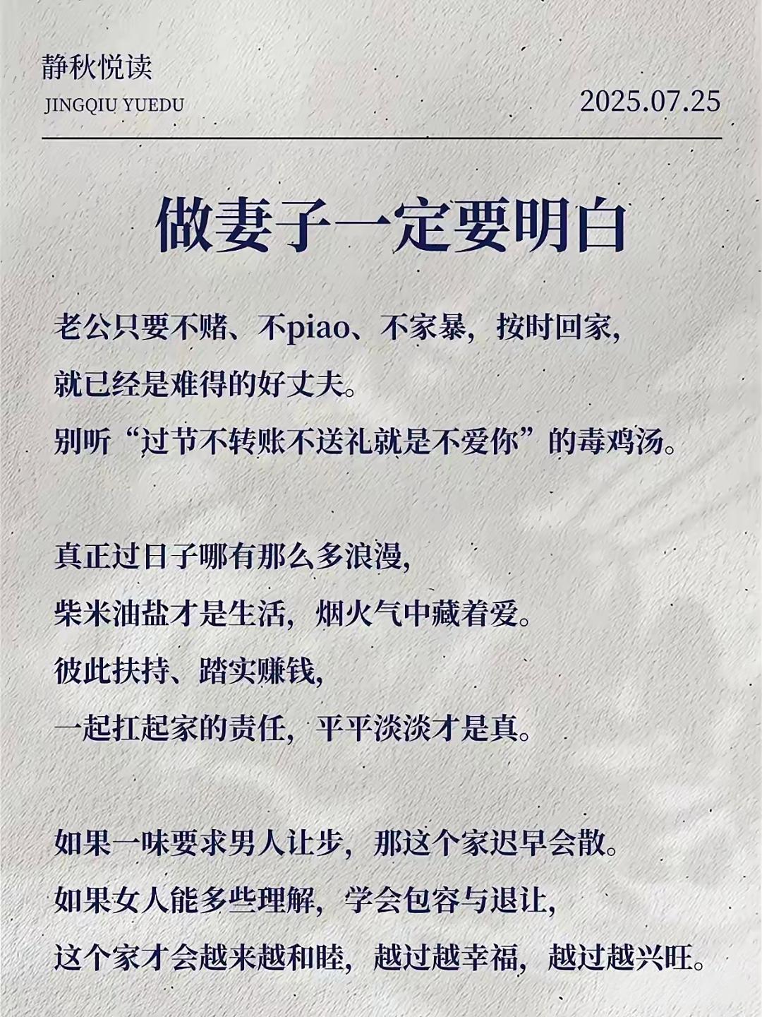 老话说得好:“女人三不管,家庭早晚散。”第一,不管钱。钱是一个家庭的命脉,男人