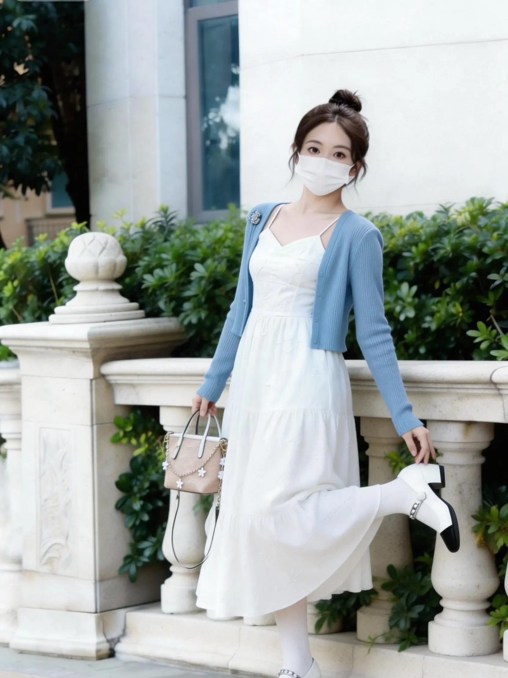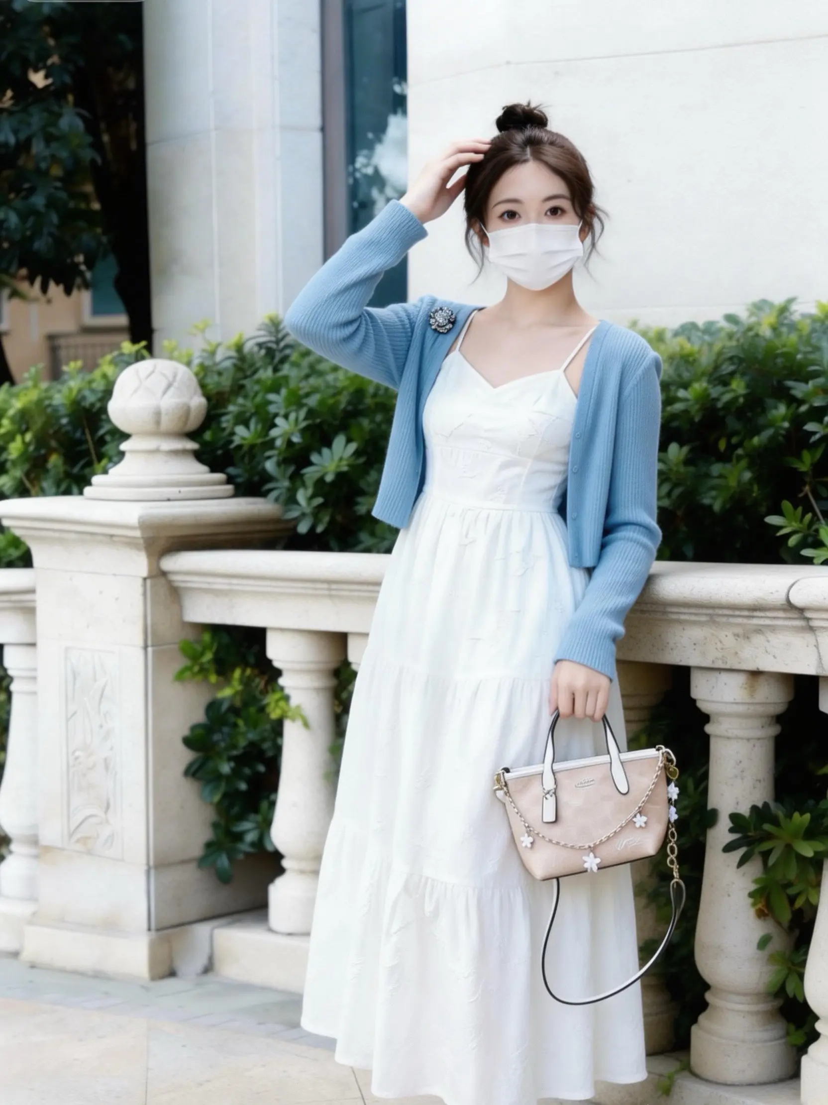干净又治愈的蓝白系,谁穿谁是氧气美女。 小白裙+蓝开衫,氛围感直接封神