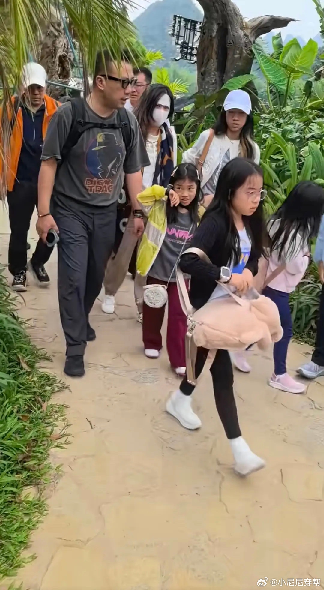霍启刚带仨娃游广西崇左,11岁长子抱妹显担当,低调无保镖引网友点赞清明假期