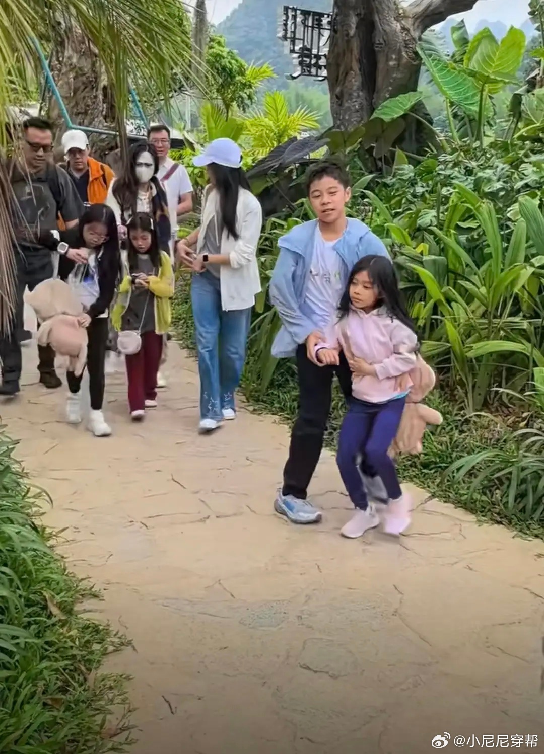 霍启刚假期带子女游广西,霍中曦抱着6岁妹妹,一家人身边没保镖!