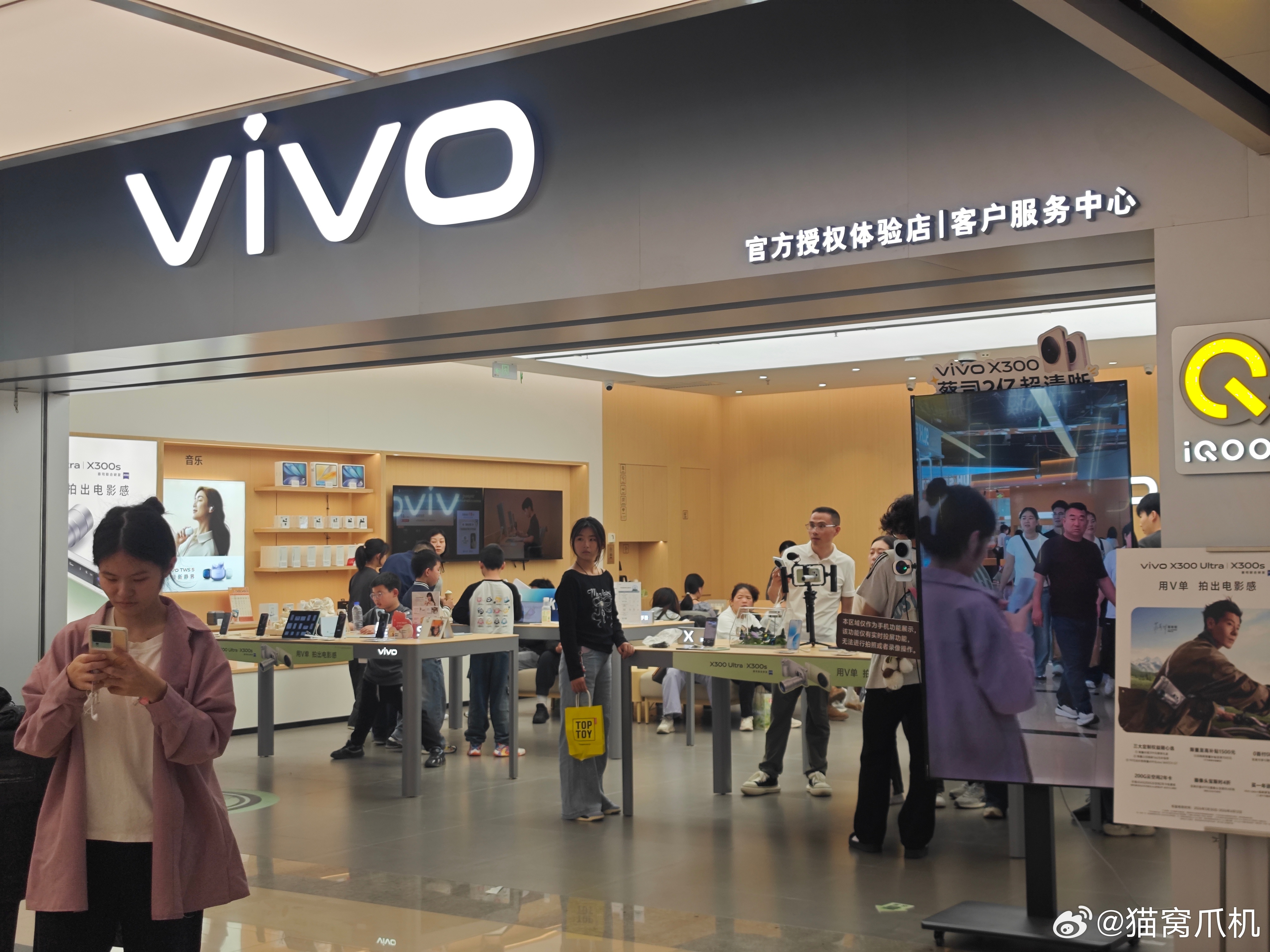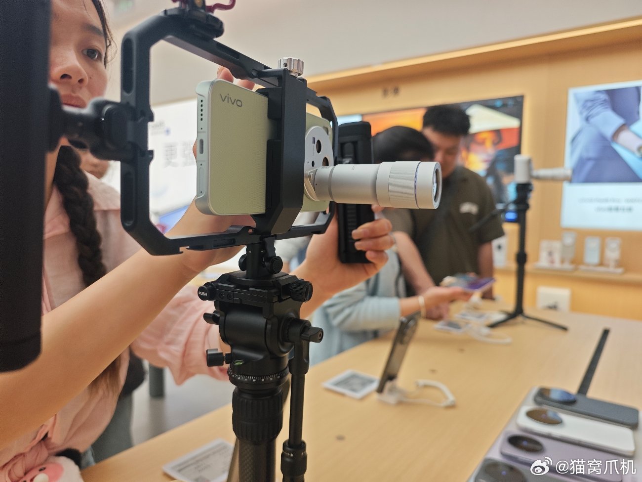 天府红因为是二次元商场,周围手机店其实人不多,甚至苹果店里大部分人都只是为了去蹭一下充电。唯独vivo因为这个摄影师套装很吸睛,店里人不少。我也去看了下,有固定装置的情况下,效果确实不错。