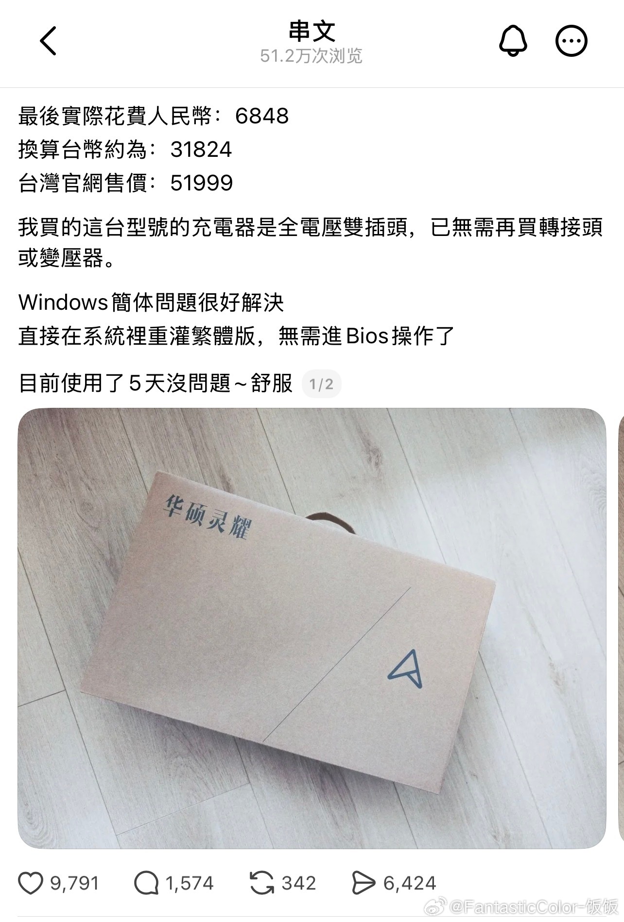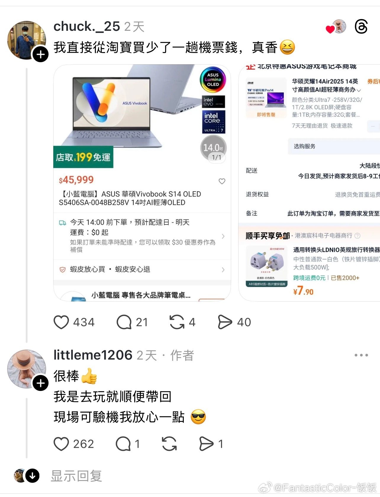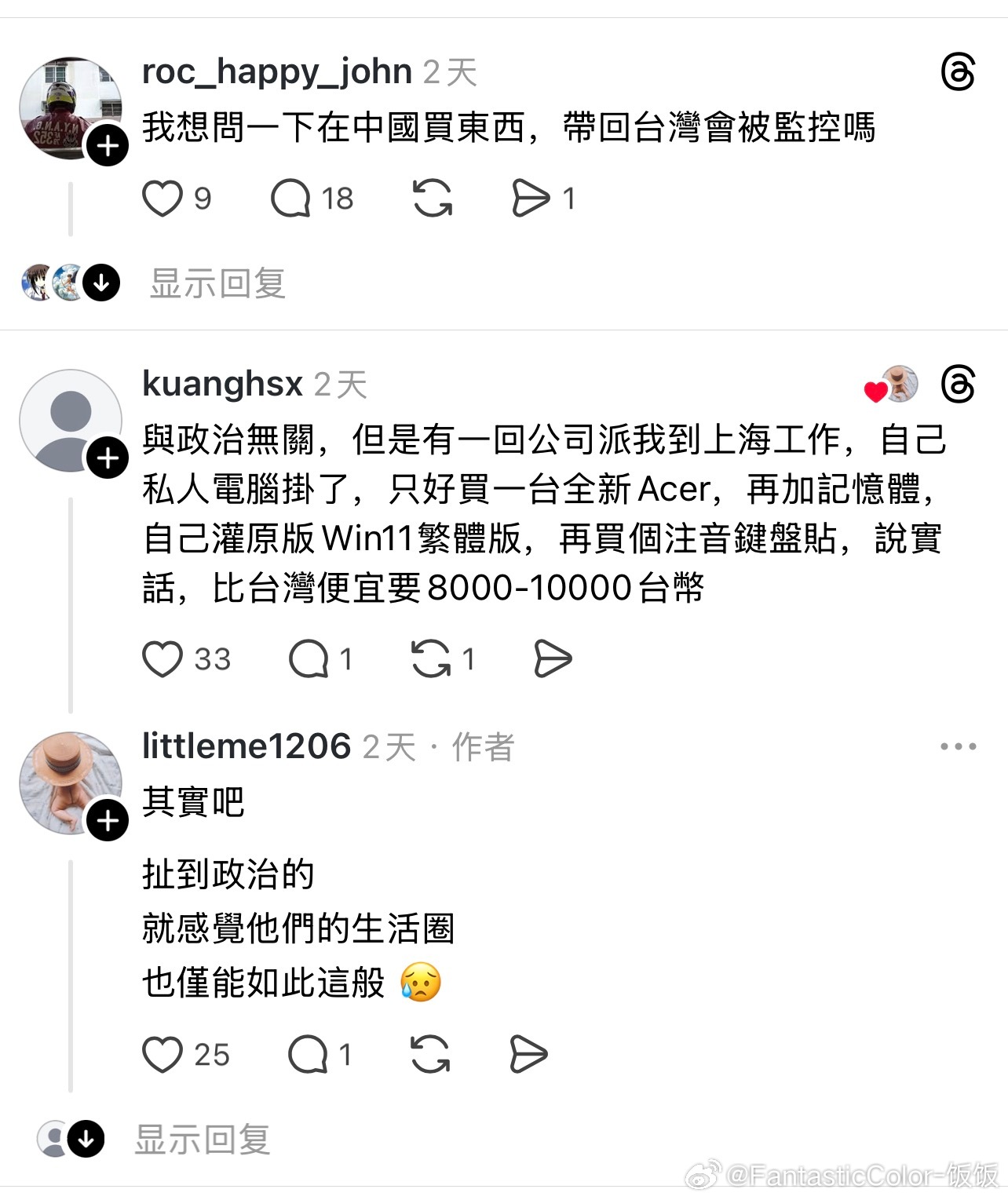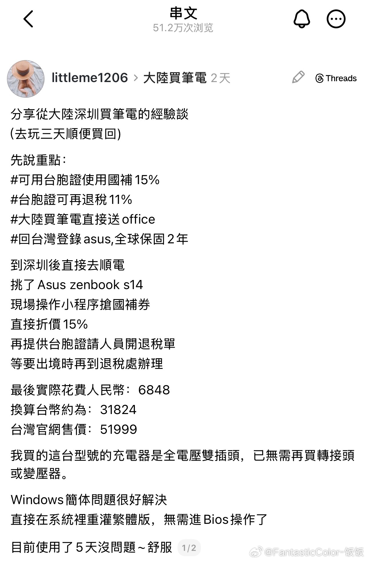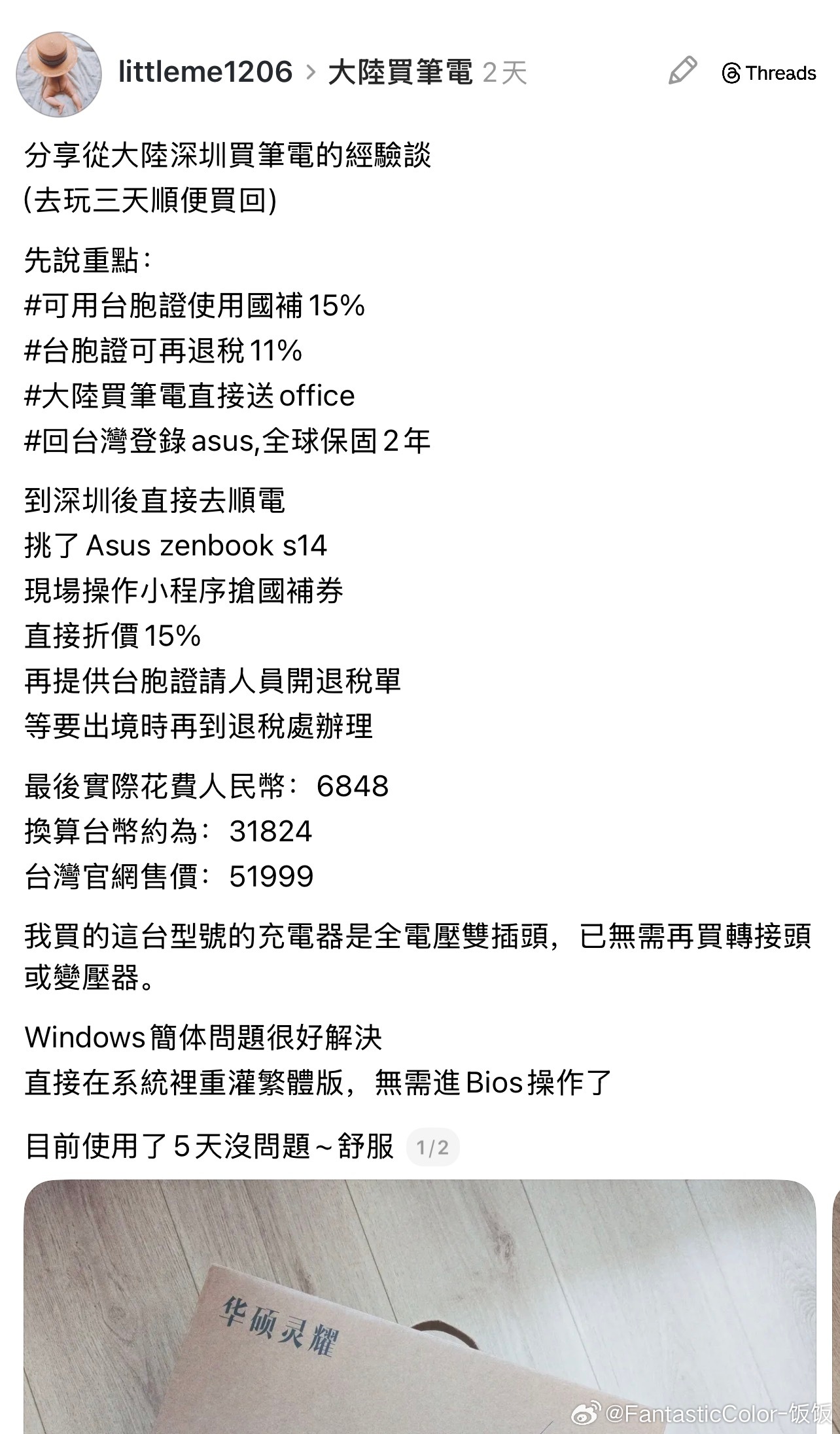 台湾网友分享在大陆买笔记本电脑享受国补,比在台湾买省了两万台币