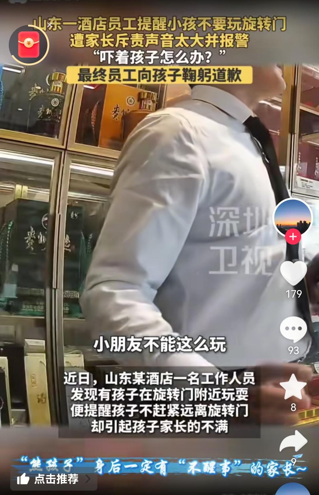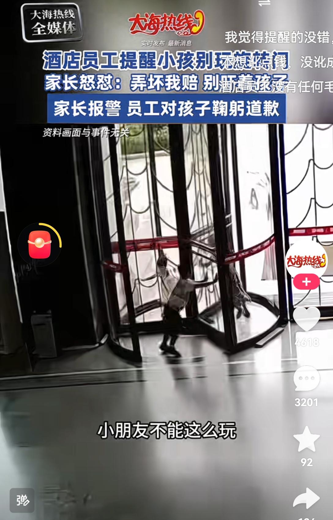 [吃瓜群众]山东济南“酒店旋转门”的事,本来并不是大事,🐻孩子和🐻家长一向“相伴相生”的,服务行业“息事宁人”很正常[思考]但这件事真正的焦点在于——已经报警,还有监控视频(说实话,提醒语气很温和,甚至还有点“娘”[尬笑]),最后竟然“在民警监督下道歉”——这件事再次提醒管理部门,以“和稀泥”的方式来避免“麻烦”,往往会招来更大的“麻烦”…
