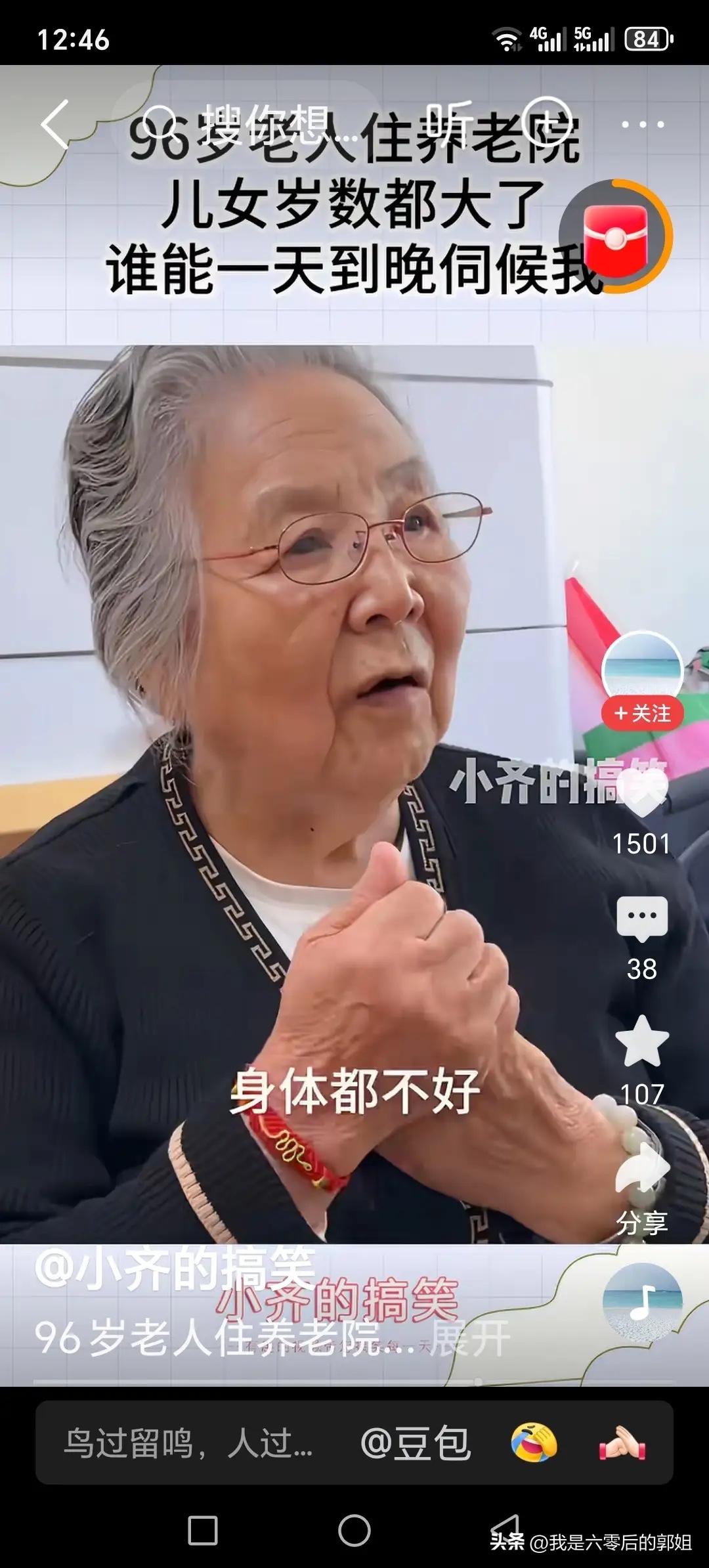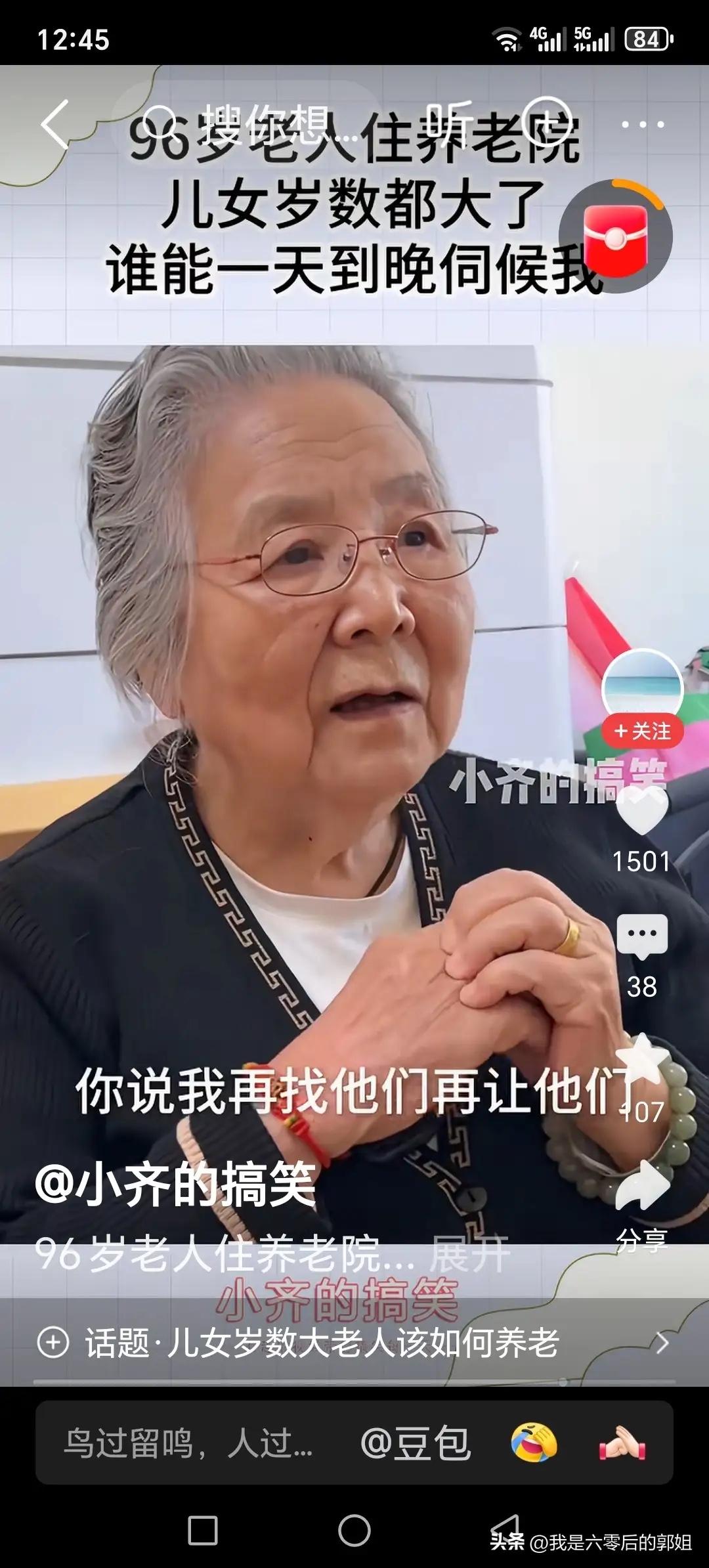 一位96岁的老人,她在敬老院里,接受了记者的采访,记者问老人,您有五个子女,难道还不能养您老吗?说我有五个儿女,再来这里,人家都笑话?两个大的身体都不好,您说,我在找他们,让他们伺候我?再也说了,人家各家都有孩子。