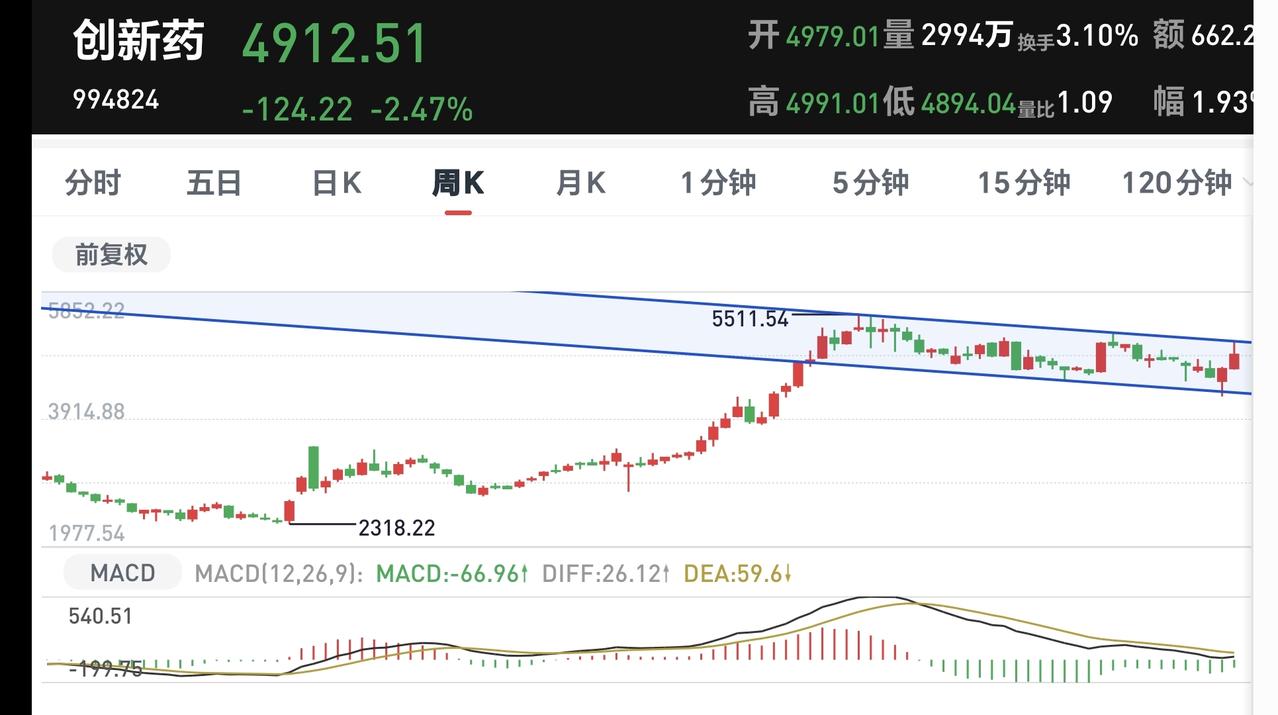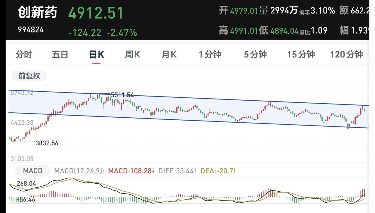 基金:创新药板块的进场点在哪里 创新药板块最近一段时间表现不错,来了一波连续的上涨,而且上涨的幅度比较大,上周五下跌了1.46%,持有人数在所有板块当中排名第13位,散户人数也是比较多。 创新药板块近一个月以来上涨了14.90%,近三个月以来上涨了8.47%,近六个月以来下跌了9.93%,近一年以来上涨了24.61%,近三年以来上涨了15.37%,这个板块有70只基金,各只基金的情况见下面的截图7。 创新药板块日线级别处于下跌通道中,上周四上涨来到了这个下跌通道的上轨线附近,上周五进行了回落,但还是距离这个下跌通道上轨线比较近,近期观察是继续遇阻回落,还是会上涨突破这个下跌通道的上轨线,如果能够实现有效突破,这里就是一个理想的进场点。 创新药板块周线级别处于短期下跌通道中,这个短期下跌通道的时间段与日线级别下跌通道时间段重合,创新药板块近期只要观察日线级别的状况就可以了。 创新药板块基金我持有147537元,持有收益29298元,持有收益率24.82%,累计收益131214元,每天定投200块钱。 我基金的持有情况见下面的截图11,持有金额排名第一的就是创新药板块基金,排名第二的是证券板块基金,排名第三的是白酒板块基金,这三只基金都是每天定投200块钱,还有一只大消费板块的基金,也是每天定投200块钱,海外互联网板块的基金每天定投100块钱,其他的都是每天定投10块钱。 你发现没有,我持有金额排名前三的,都是已经调整了很长时间的板块,也都是每天定投200块钱的板块,这就是我的持有原则,调整的时间越长,我的仓位越高,板块的位置越低,我的定投金额越大。 有许多人的持仓是相反的,他是位置越高的板块持有金额越多,位置越低的板块持有金额越少,调整时间越长的板块,他的定投额度越小,调整时间越短的板块,他的定投额度越大,这就是真正的反向操作,市场一旦有风吹草动,这样的持仓结构会有很大的风险。 玩基金并不是简单的买进和卖出,玩基金其实就是一个字:等,等进场时间,等阶段性上涨的到来,等离场时间,然后就是这样周而复始,在这样的循环往复之中,你的资产会像雪球一样不断的变大,你的身价也在不知不觉当中变高,但许多人都不愿意等,许多人都想一夜暴富,而这些都是不切实际的想法。 我写文章请大家过来欣赏,许多人看了以后,什么痕迹都没有留下,走的时候也是一声不吭,连一个点赞,连一句评论都不会留下,走的是那样的无声无息,这样的人是不地道的,没有做人最起码的准则,我不愿意与这样的人交朋友。