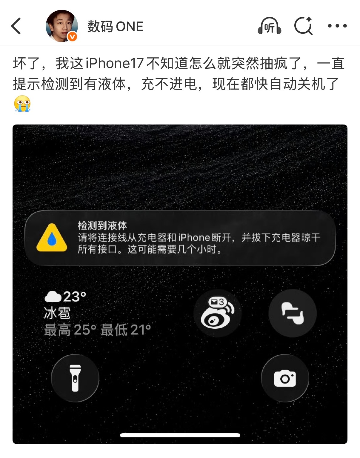 我服了,虽然现在充电没有提示检测到液体,也能提示iPhone在充电了