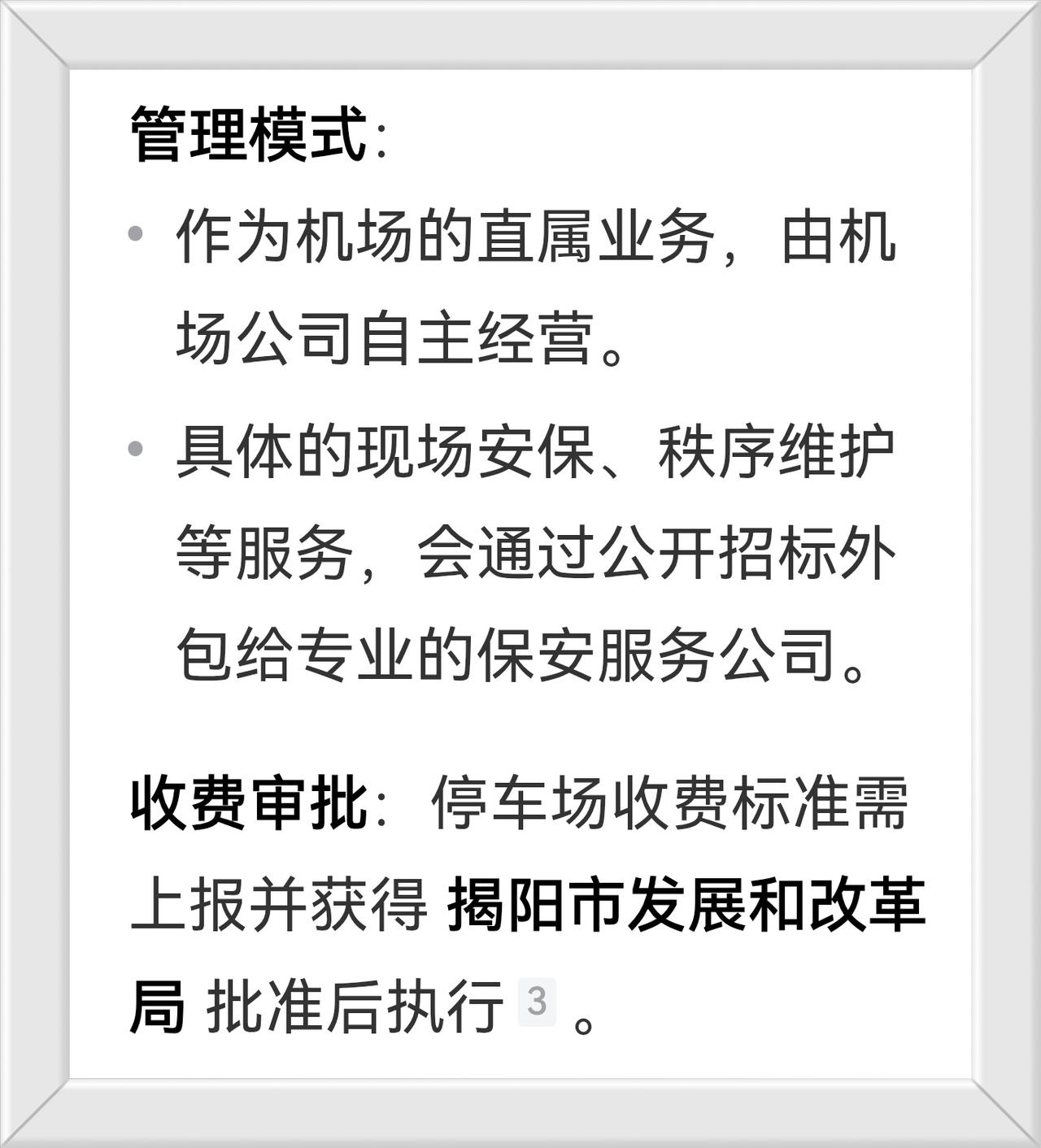 广东省机场管理集团有限公司揭阳潮汕机场公司直接负责管理运营《揭阳机场》停车场。