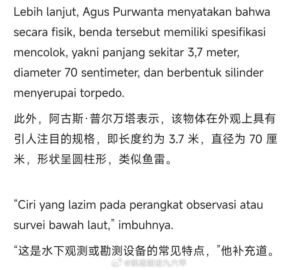 印尼渔民在龙目海峡Gili Trawangan岛以北16公里海域捞上来一个CSIC的潜航器我一点都不奇怪,反而要是没啥蛛丝马迹才是怪事。总的来说这种事工夫在平时,偶尔出现点小意外不要紧的。