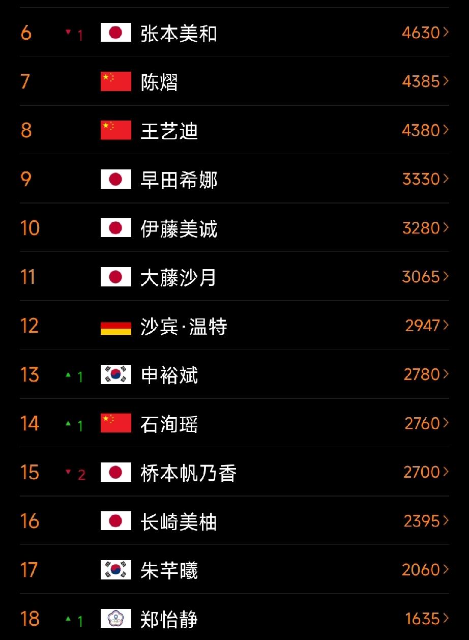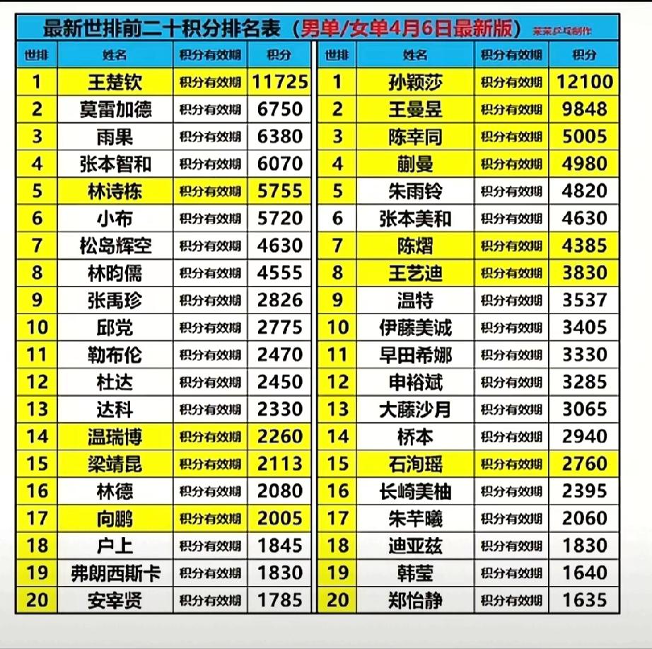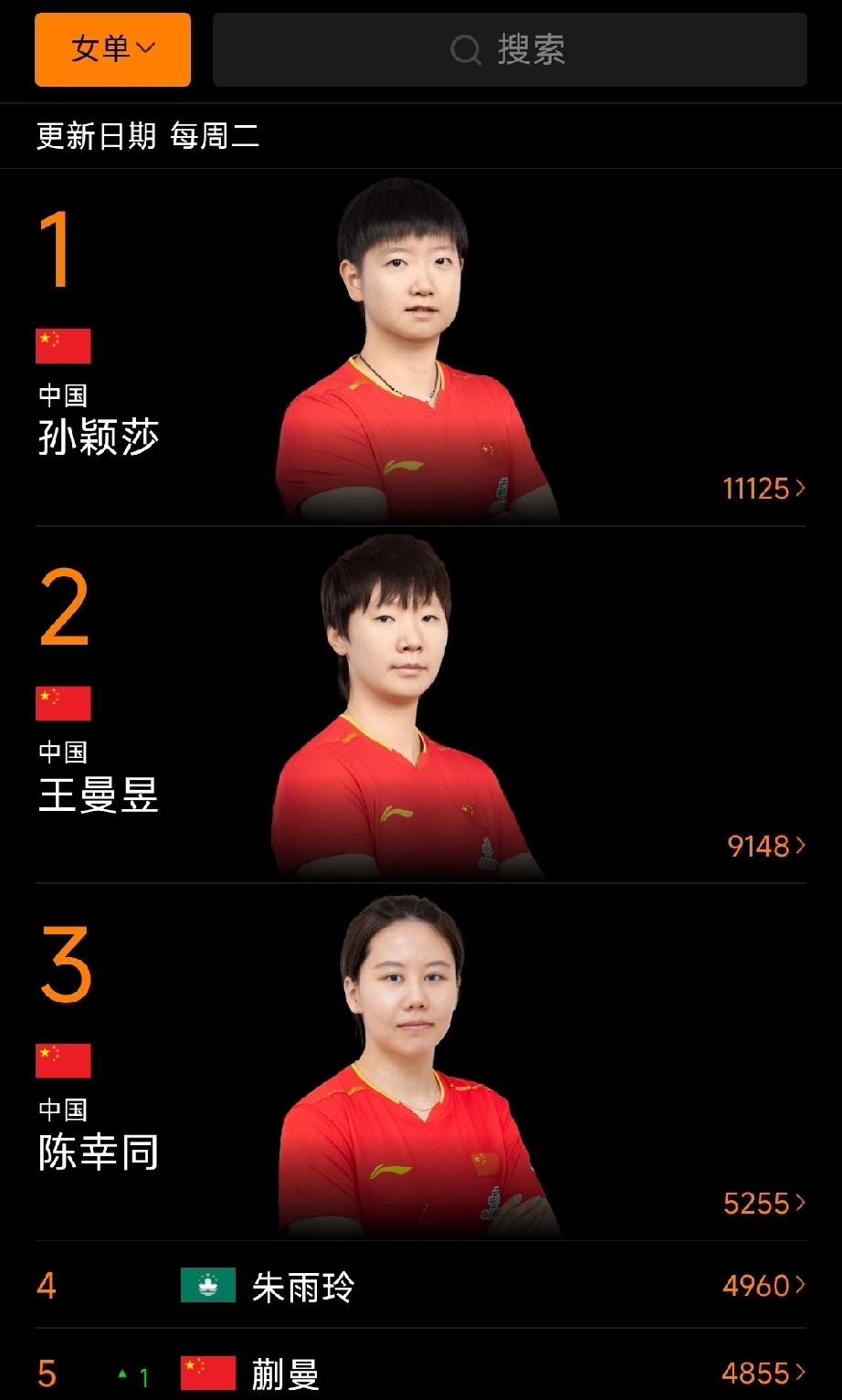 石头:听说有人把今天的实时积分和排名算出来了?看看我前进没? 小曼:好好跟政哥打比赛吧,追不上世二!也没有自己的小区! 石头:莎姐威武都一万二千多了!头哥紧随其后!我滴姐姐呀,你的种子位回来了,恭喜恭喜 小曼:有什么用?世界杯都打完了! 石头:重庆冠军赛赢了莎姐拿了银牌,结果世界杯没特权随意掉落莎姐家,如今输了球反而。。。也是挺意难平 小曼:行了行了别叭叭了,好好比赛赶紧把状态找回来,世乒赛等着你呢