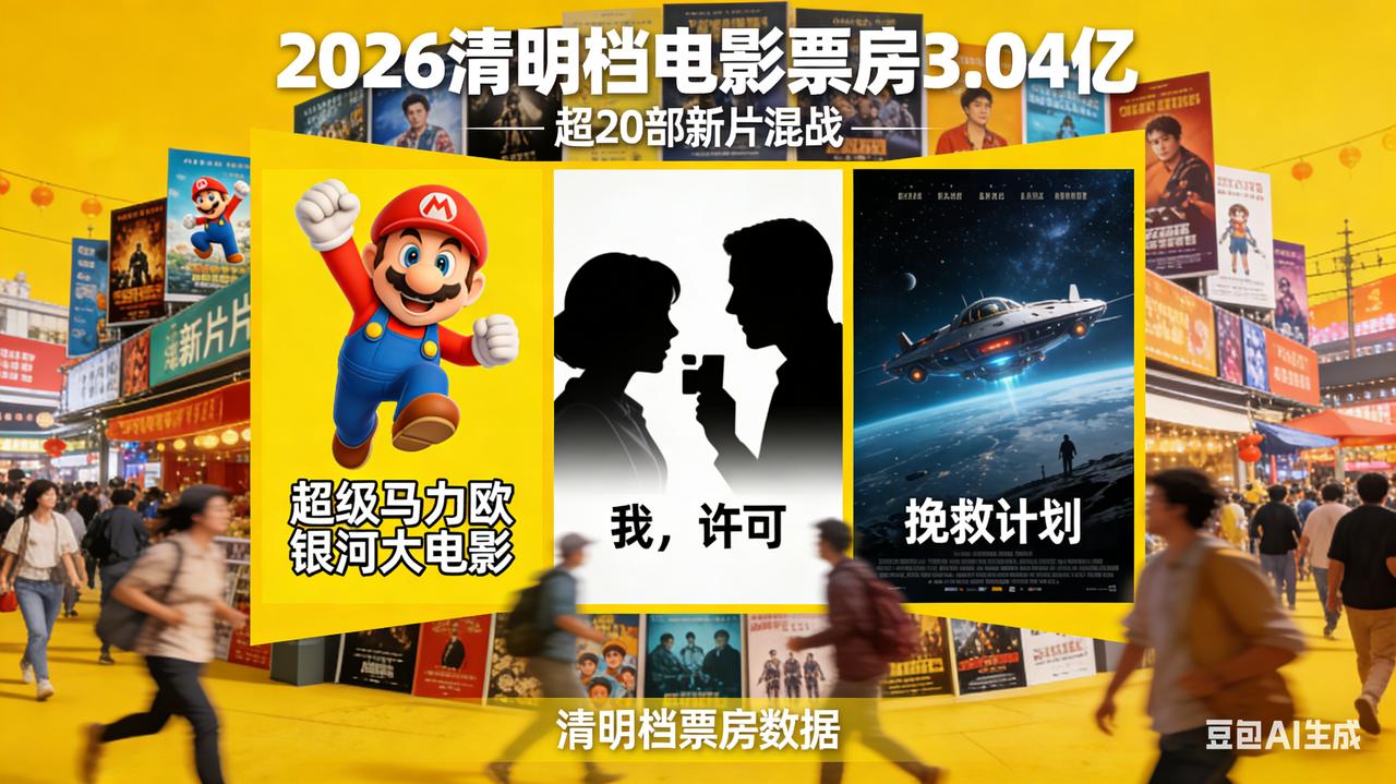 3.04亿!清明档票房收官,超20部新片混战,这3部成最大赢家,观众:选择困难症犯了 清明档电影市场正式收官!截至4月6日21时,2026年清明档(4.4-4.6)总票房锁定3.04亿元,观影人次798.4万,总场次达145.4万场,刷新中国影史清明档场次纪录 。超20部新片扎堆上映,涵盖动画、亲情、科幻、悬疑等多元类型,形成"小而美"的档期生态,观众直呼"挑花眼" 。 一、票房前三甲出炉,马力欧领跑国产片崛起 档期票房冠军毫无悬念被《超级马力欧银河大电影》摘得,以6345万元强势领跑,成为撬动市场的核心动力。这部游戏IP续作精准击中亲子家庭与80、90后游戏迷,视觉还原获赞无数,单日票房连续破2000万。 国产片表现亮眼,《我,许可》(文淇、秦海璐主演)以4794万元位居次席,聚焦母女代际冲突引发强烈共鸣,被称为"中式母女关系教科书" 。科幻片《挽救计划》以4245万元排名第三,硬科幻设定与紧凑剧情吸引年轻观众,成为档期"黑马"。 值得一提的是,4月5日单日票房达1.17亿元,较首日上涨7%,实现"逆跌",展现观众观影热情 。 二、多元类型爆发,女性题材成票房新引擎 今年清明档彻底打破单一类型主导格局,20余部影片覆盖全品类题材 : - 合家欢动画:除马力欧外,《猪猪侠大电影·星际时代》《汪汪队立大功大电影3》等为亲子观影提供丰富选择 ​ - 女性题材:《我,许可》《我的妈耶》《阳光女子合唱团》三部作品合计票房破亿,细腻情感描写打动人心,成为拉动票房的核心主力 ​ - 红色影片:恰逢红军长征胜利90周年,《八子参军》《浴血荣光》等革命历史片让观众在清明缅怀先烈,传承红色基因 ​ - 悬疑科幻:《天才游戏》《蝴蝶楼·惊魂》等满足年轻观众对强情节作品的需求 三、观影新趋势,错峰看片成主流仪式感升级 与往年不同,今年清明档出现三大新趋势: 1. 错峰观影:4月6日下午影院依然座无虚席,观众避开高峰时段,追求更佳观影体验 ​ 2. 仪式感消费:不少家庭将"看电影+清明缅怀"结合,看完红色影片后带孩子前往烈士陵园献花,让假期更有意义 ​ 3. 内容驱动:观众决策更谨慎,高口碑作品如《我,许可》凭借真实情感引发话题,单点热度带动观影热潮 影院也调整排片策略,热门影片从早到晚密集排映,增设午夜场,并推出"亲子套票""闺蜜专场"等优惠活动,进一步激发观影热情 。 四、市场启示,小而美档期的生存之道 3.04亿票房虽较去年3.78亿有所下滑,但场次创纪录显示影院信心,多元类型布局证明内容供给精准的重要性 。业内人士认为,清明档不依赖某部大片拉高大盘,而是通过多元内容满足细分需求,形成健康生态 。 随着假期结束,这些影片仍将在全国影院热映。错过清明档的观众,不妨抓住工作日空闲,走进影院感受这场视听盛宴。