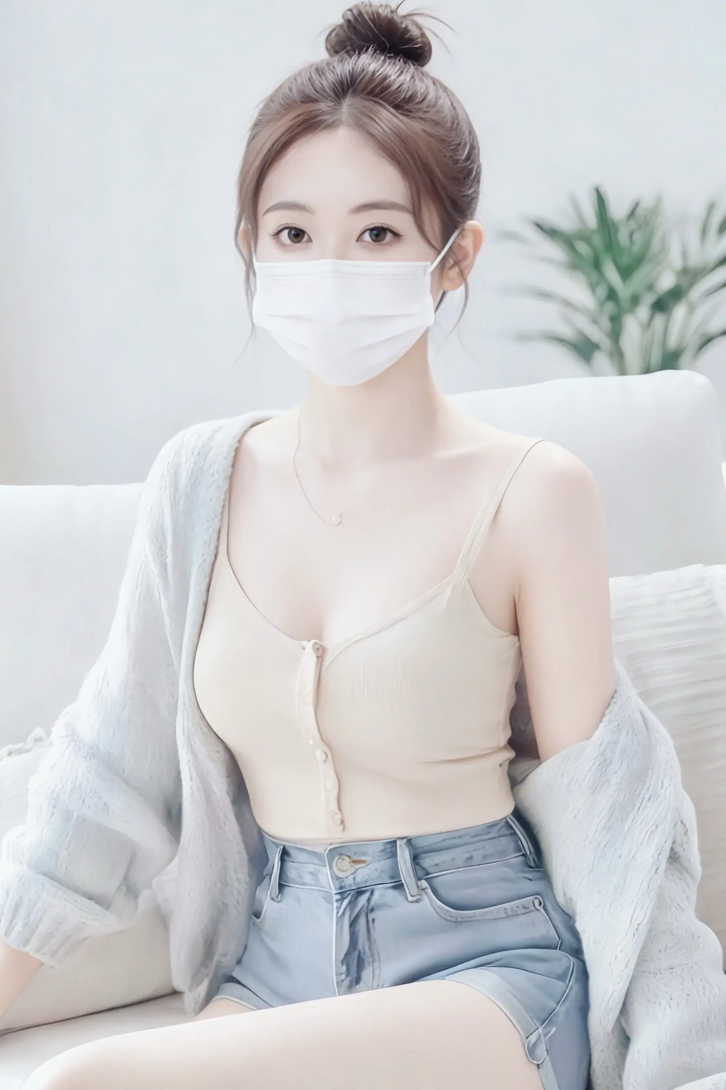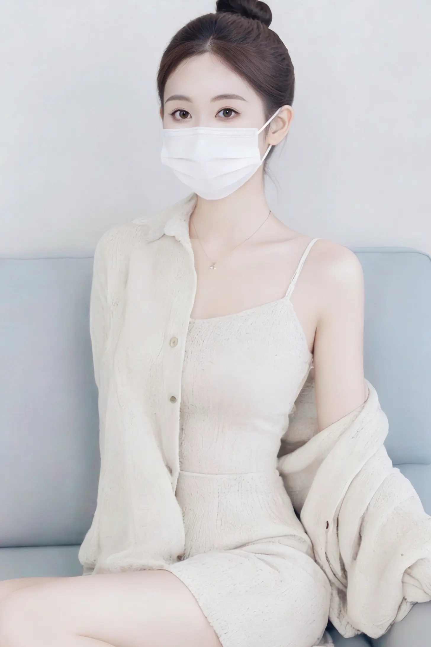 浅色系吊带+软糯开衫,舒适又显瘦,不管是宅家休息还是拍照都超合适~
