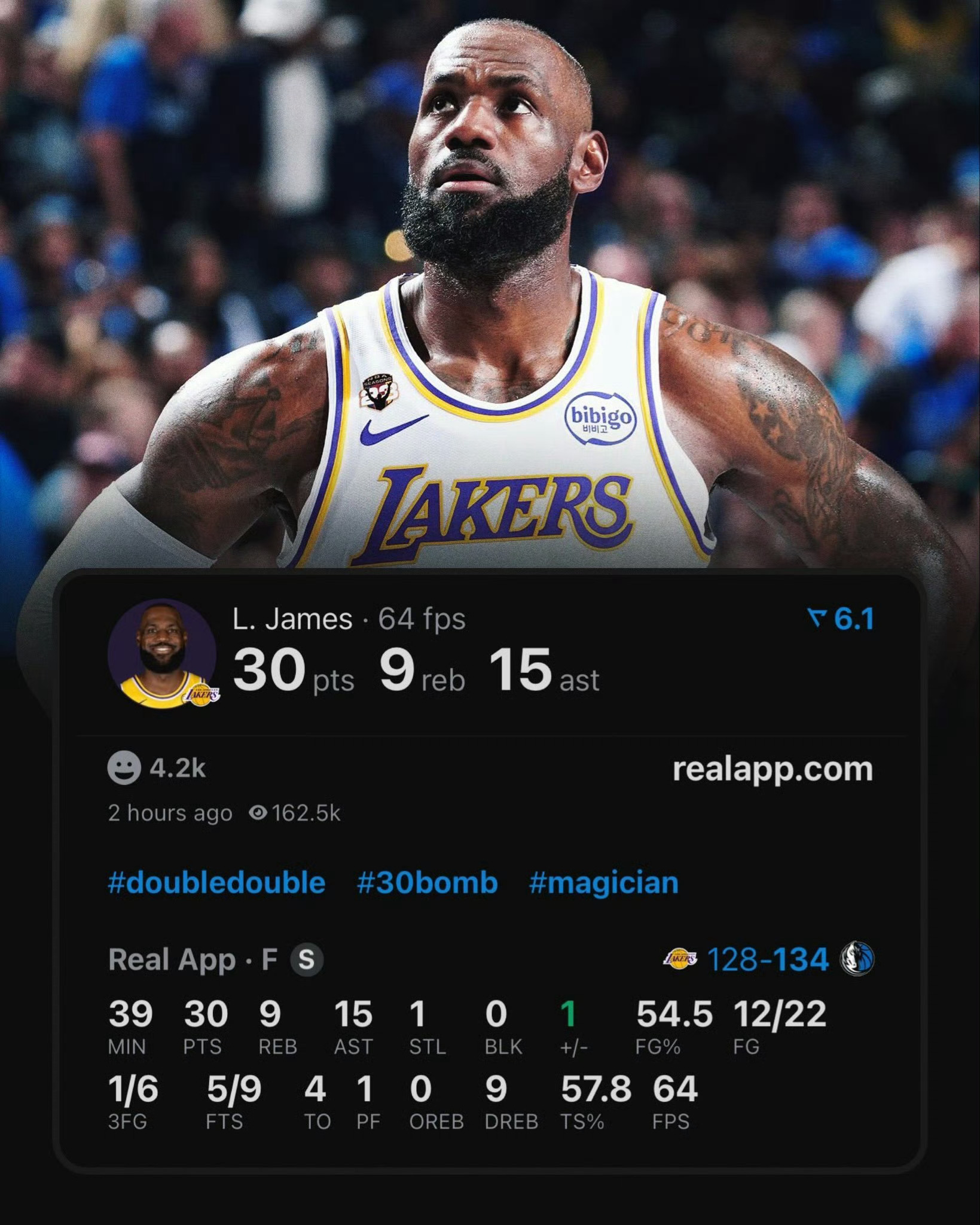 41岁的詹姆斯带着伤兵满营的湖人大战独行侠,出场39分钟得到30分9篮板15助攻,还是像31岁一样扛起所有!只是英雄迟暮,谁都有打不动的一天!已经非常了不起了