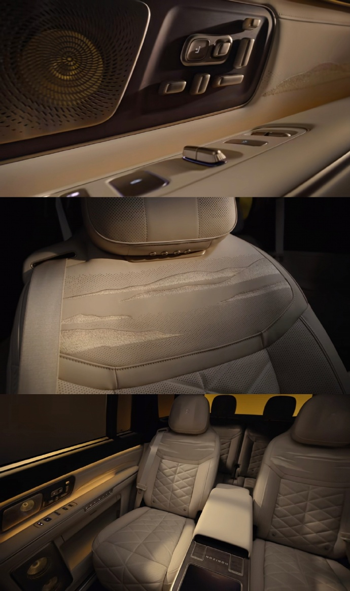 蔚来ES9内饰,用上了大量刺绣,不知道具体是什么绣法,另外有比较多的物理按键。