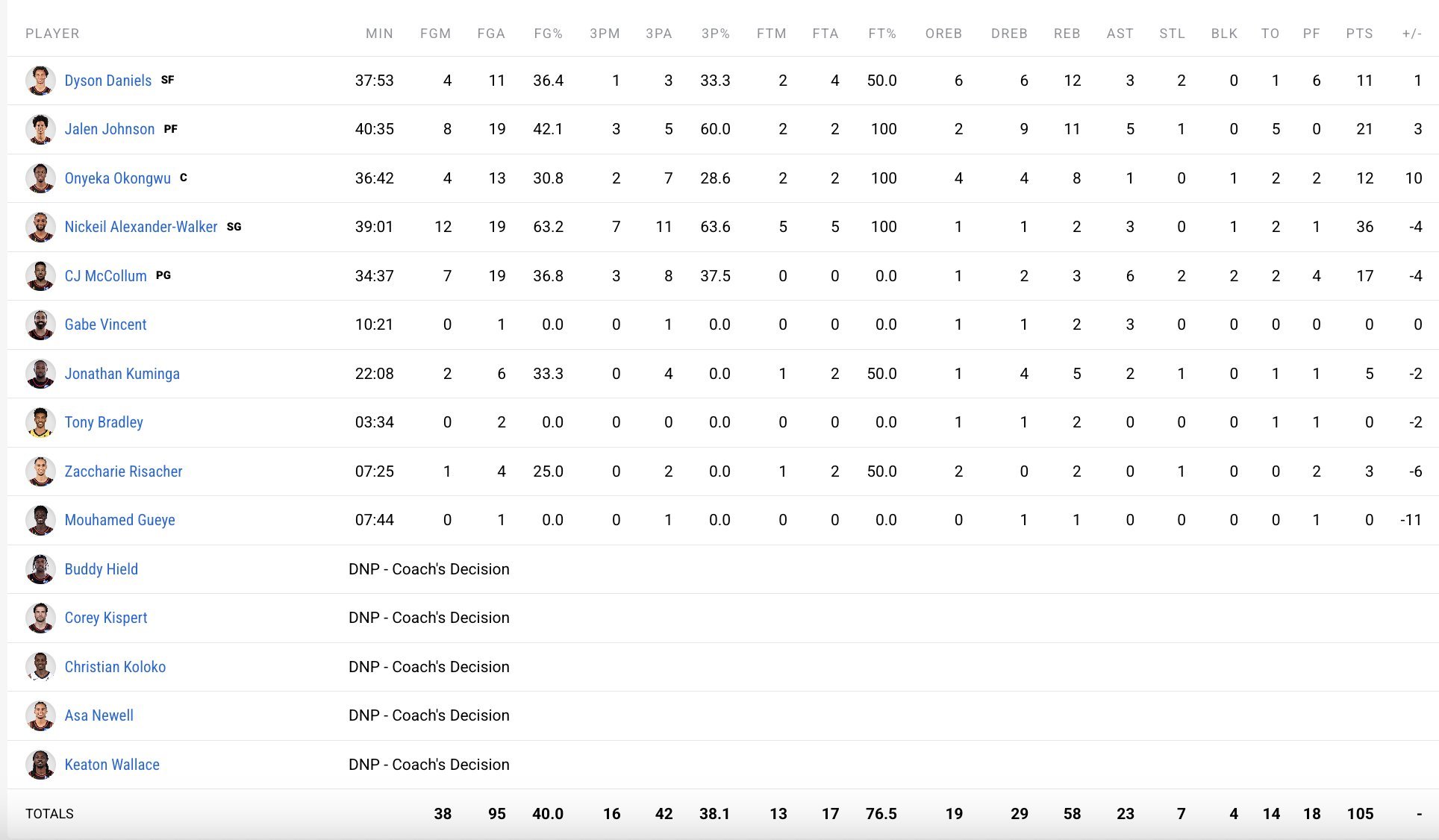 老鹰105-108不敌尼克斯,连胜中断。库明加出场22分钟,拿下5分5篮板2助攻1抢断。