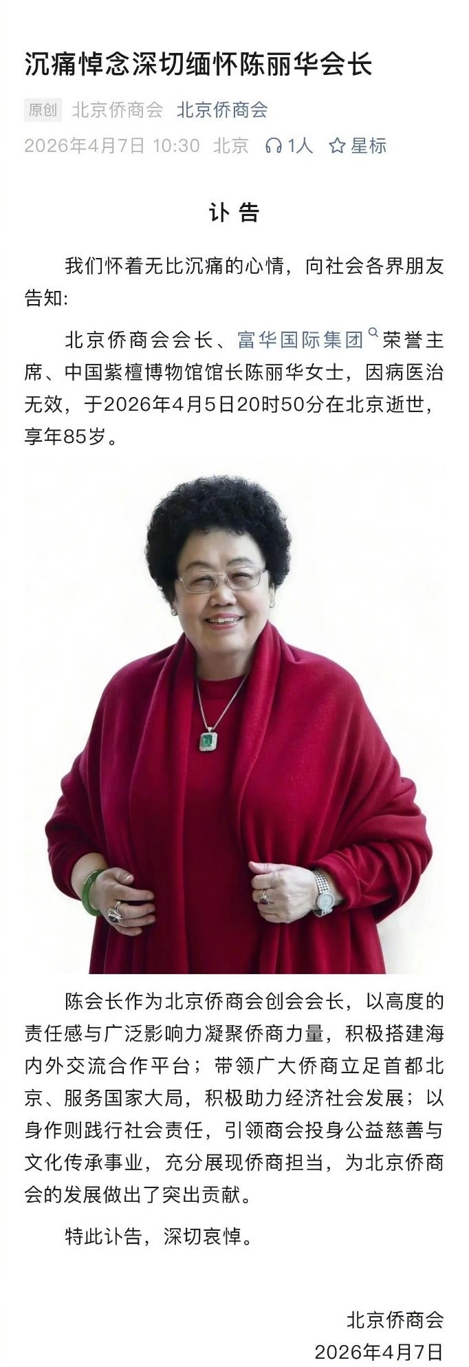 陈丽华逝世我对这位老太太的印象还停留在唐僧的爱人,曾经的女首富,没想到已经85岁了,一路走好!