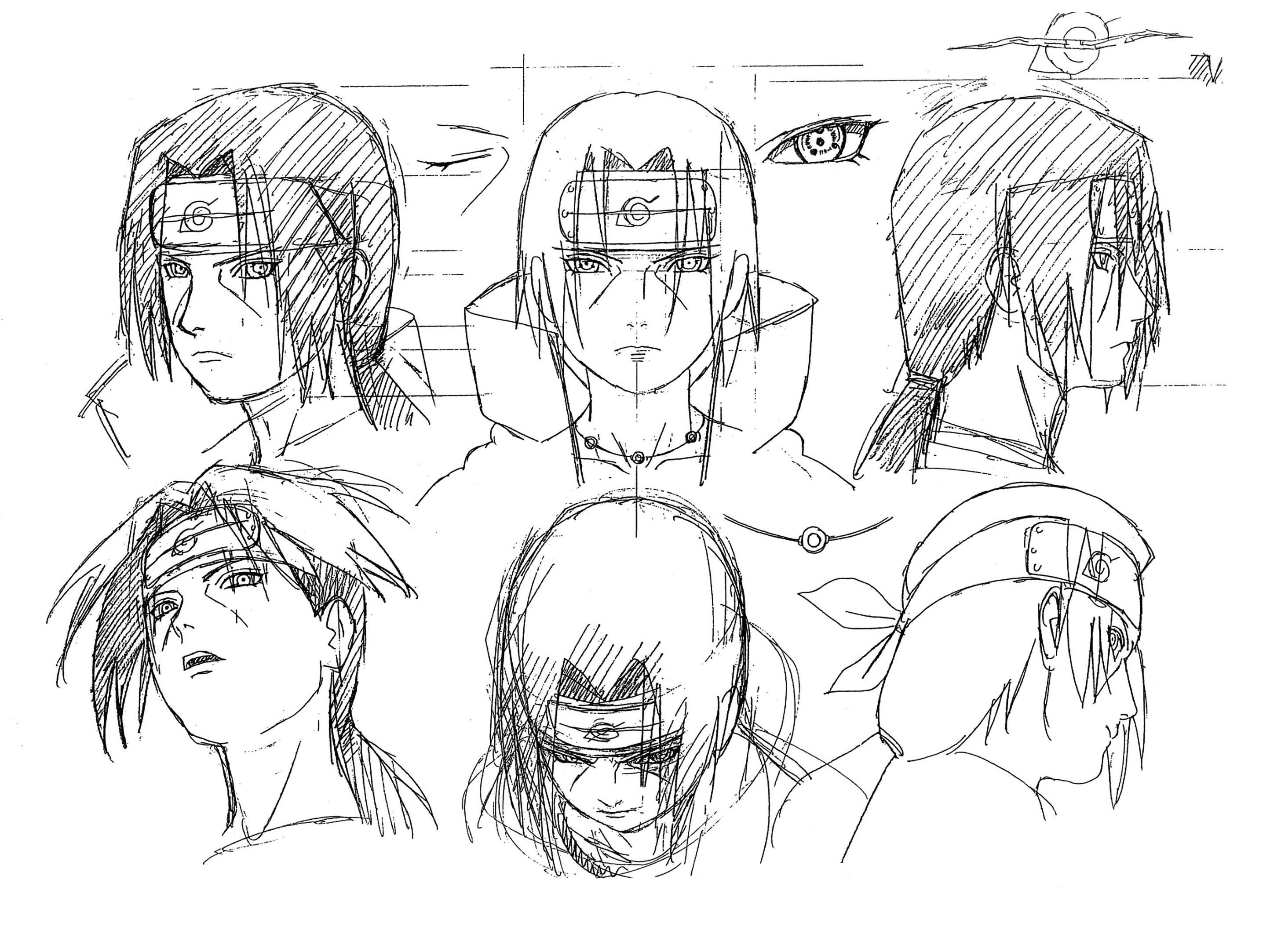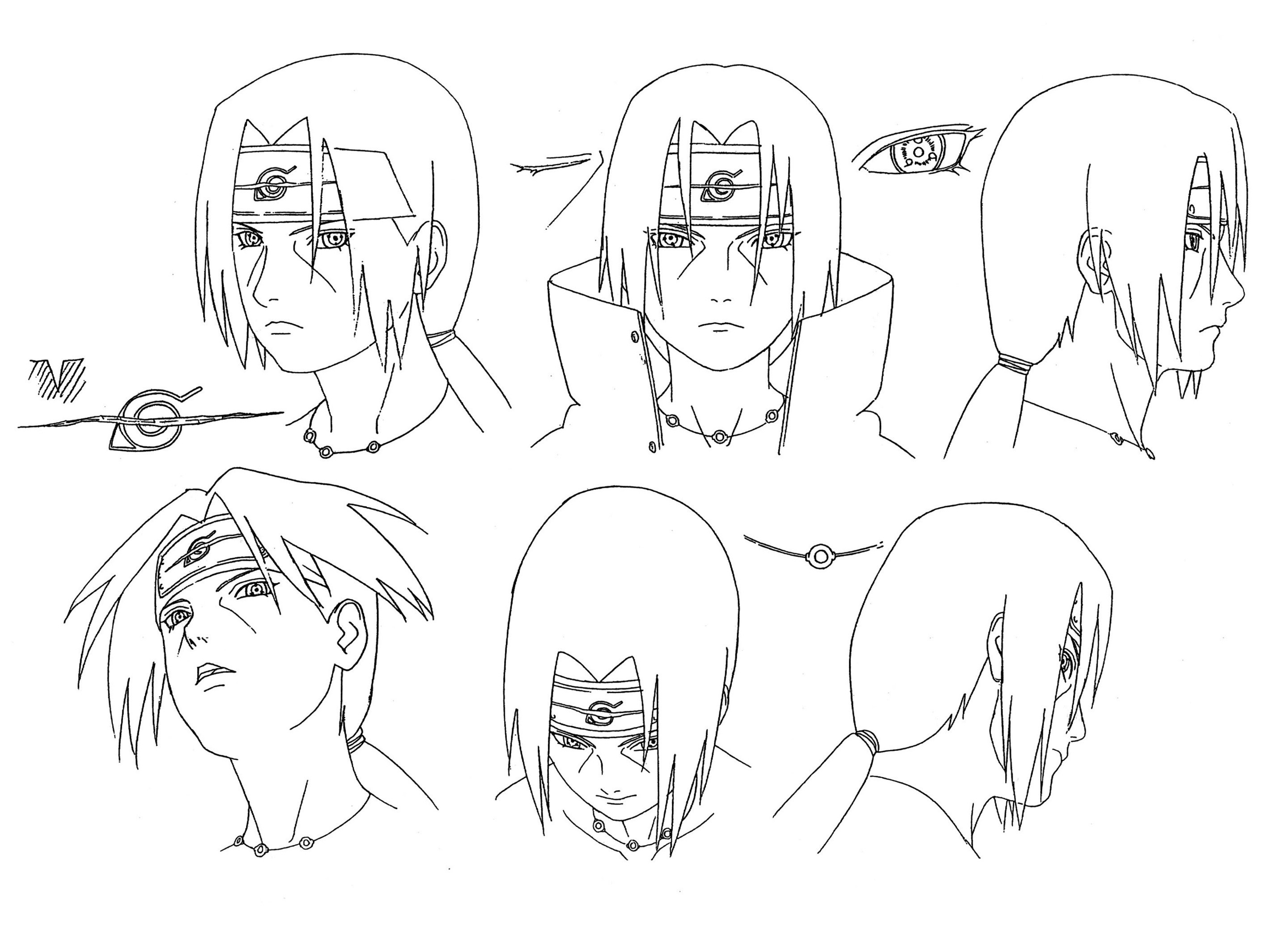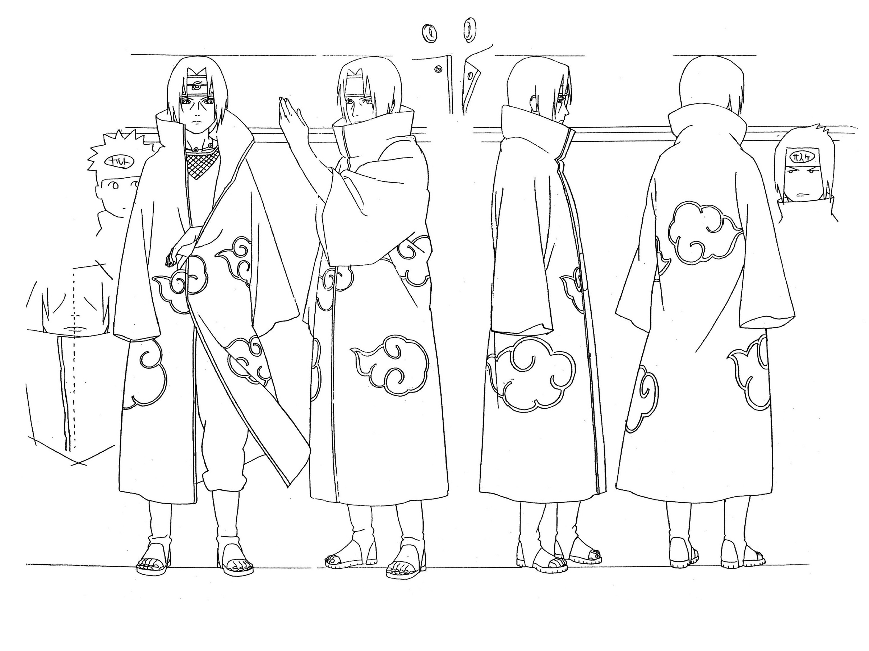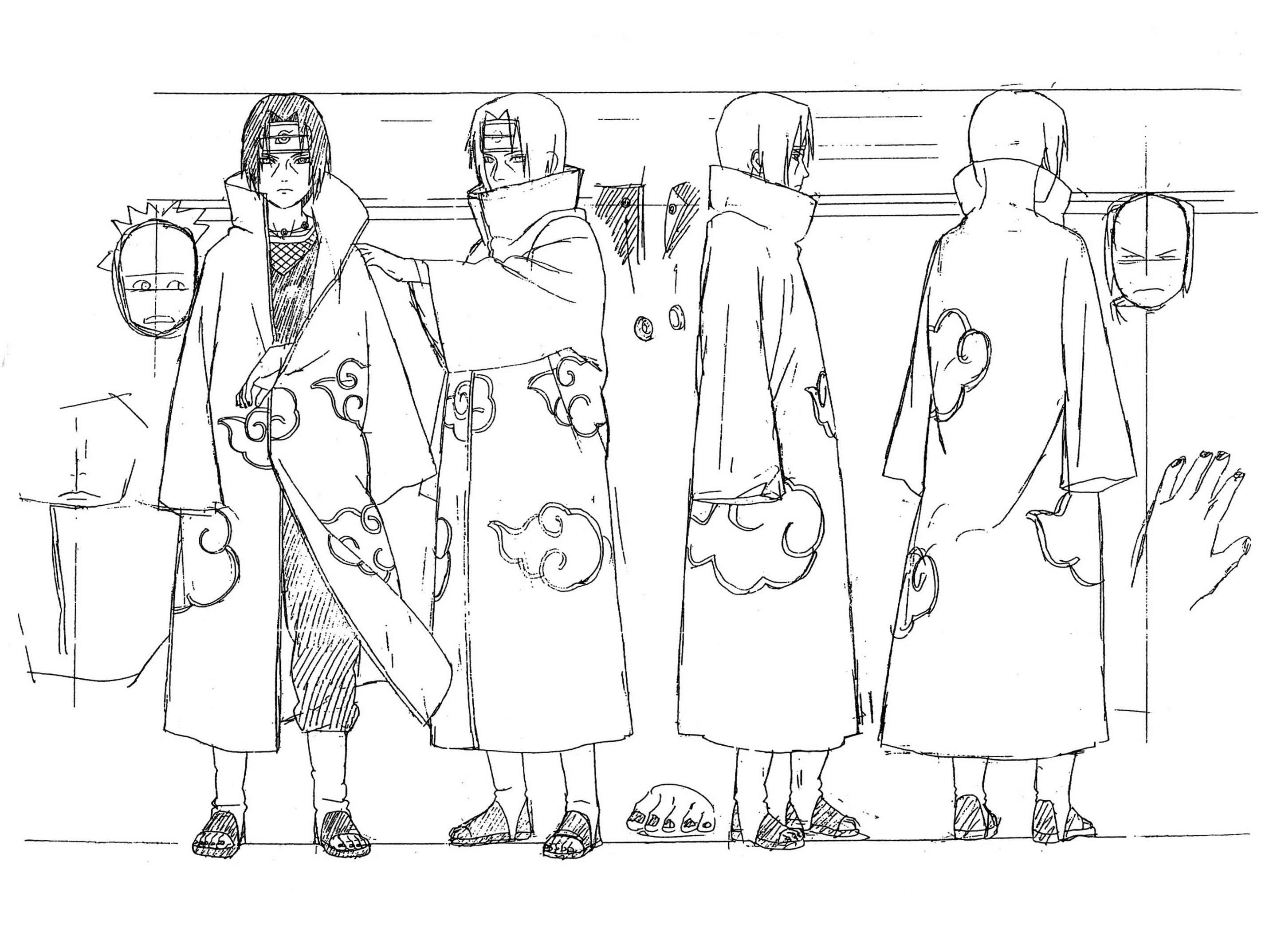 高清修复整理了一组鼬和鬼鲛的官方人设图(线稿)火影忍者宇智波鼬干柿鬼鲛