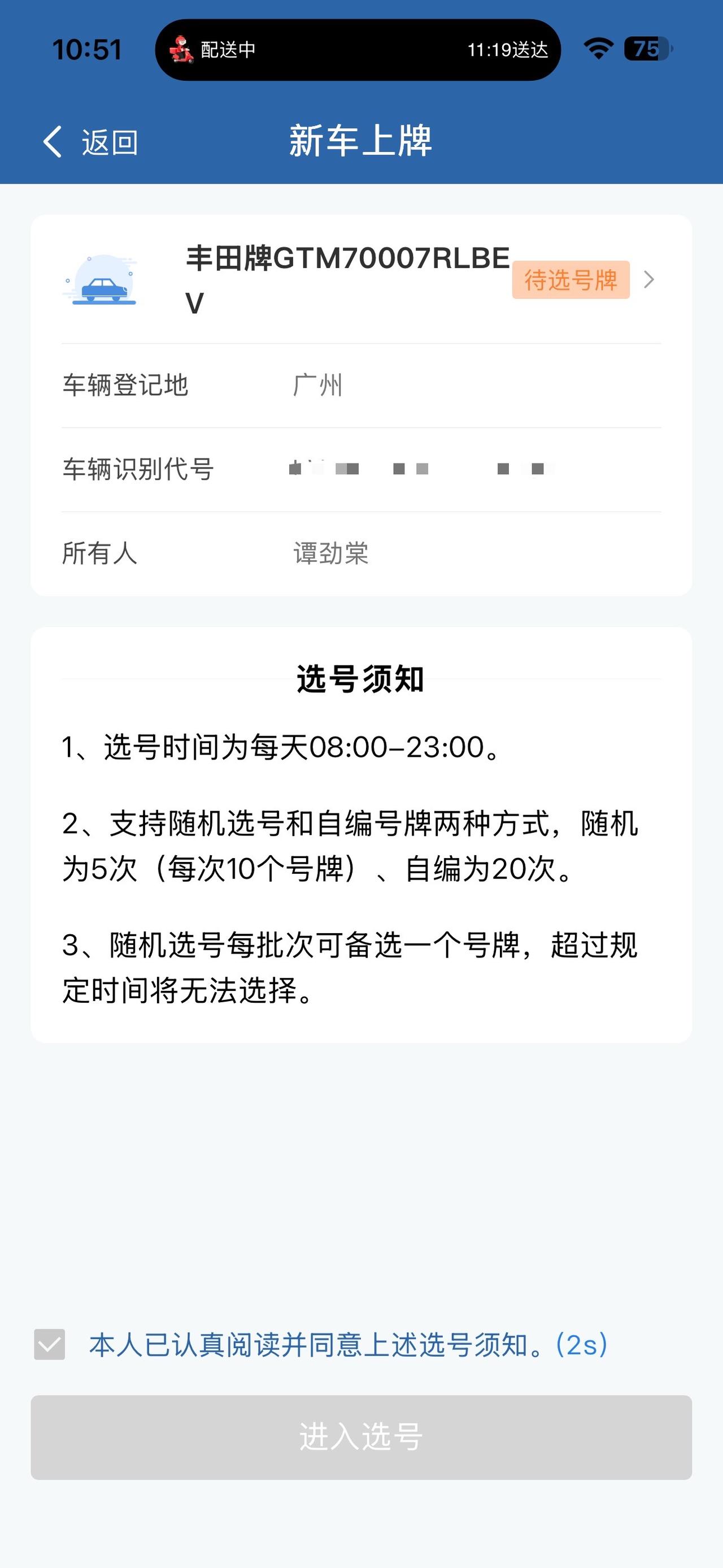 现在新车上牌真的好幸福… 这次我还在中山买车,要上广州牌 去年都得跑一趟广州的车管所,报废一整天 这次只需要打开12123,免验车了 上传合格证照片和指标书编号 直接进入选号,搞定后就什么都不用做 等待行驶证、登记证和牌照抵达… 简单到跟点外卖一样,我服了… 好爽啊啊啊啊啊 什么时候二手车上牌也能这样!!!【来自懂车帝车友圈】