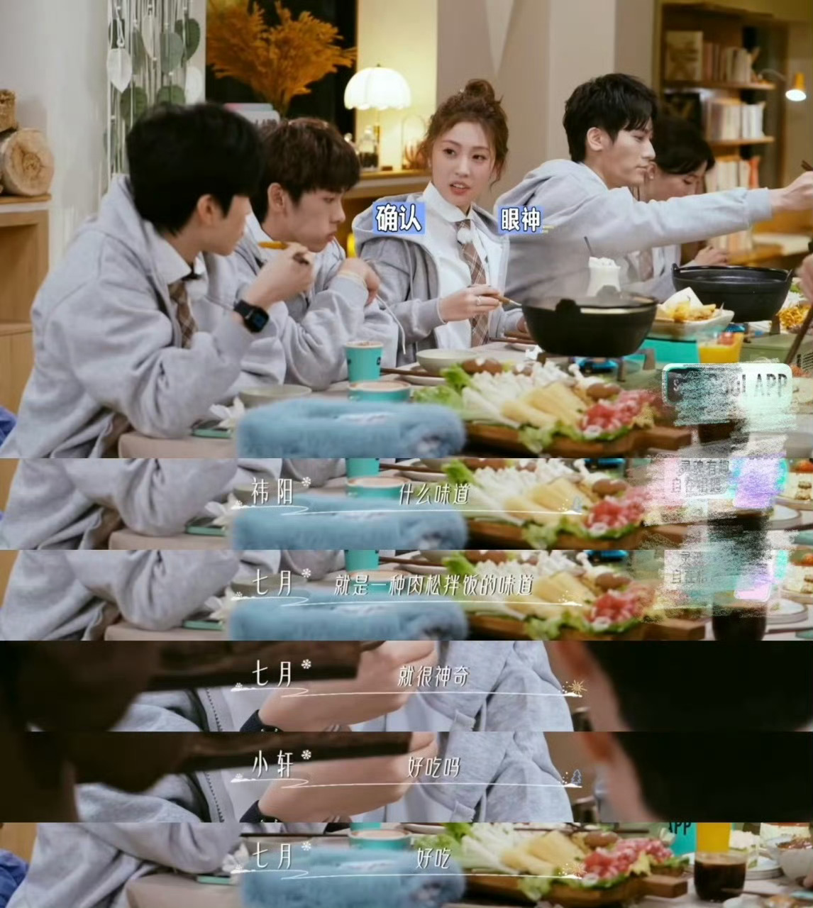 餐桌上相处就能感觉出来,我cp滴滴响,从开始选座位到结束,中间的眼神太妙了,大家都有较劲的意思,很爱看这种餐桌上的互动,博弈了属于是!怦然心动20岁