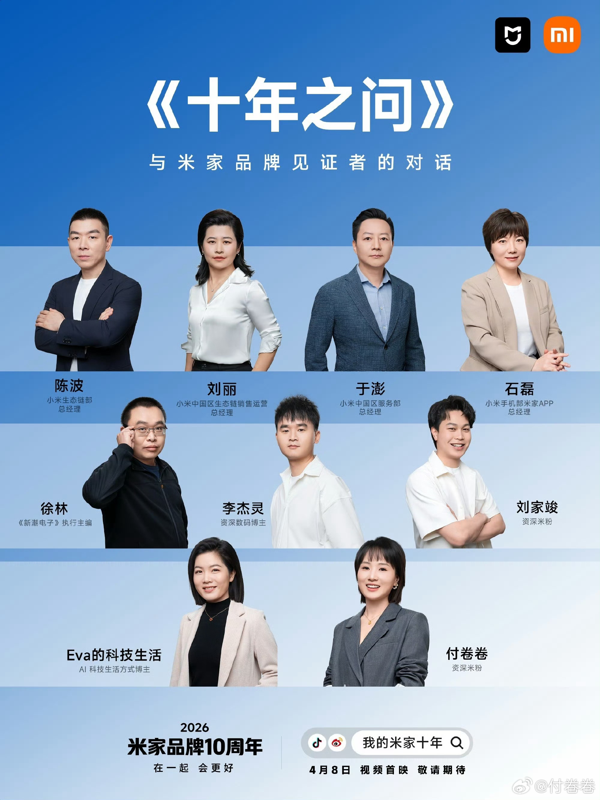 转发带话题我的米家十年 ,给我说一下你们跟米家的日常故事好吗?另外,我跟米家的十年之问视频明天播出(4月8日),谢谢大家支持