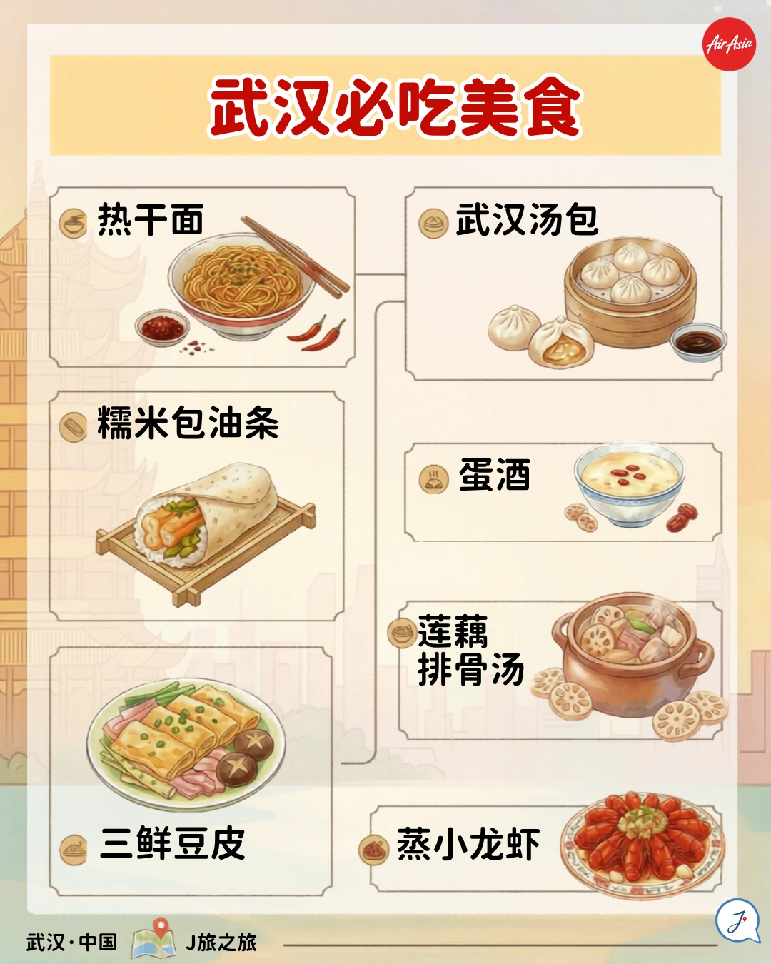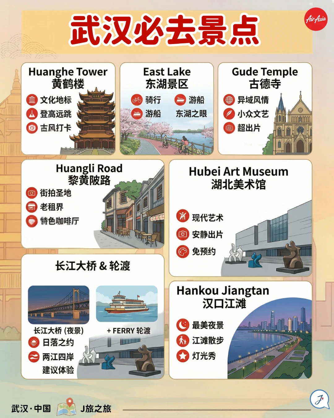 J旅帮大家整理了这套 【保姆级武汉攻略】,从美食、景点、到预算清单,一篇看懂!武汉真的是一个被严重低估的宝藏城市,东西超好吃、风景超有电影感,还有超强的高铁枢纽,一趟旅程真的就可以玩个够!