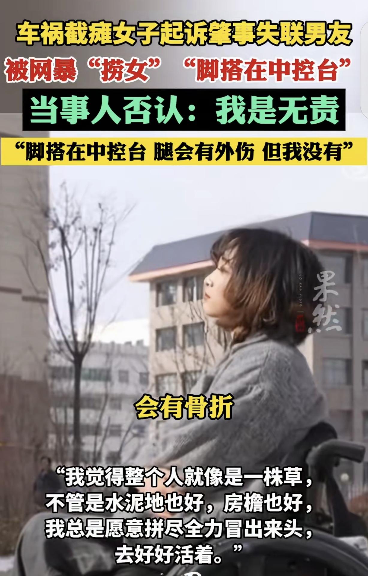 “到底谁渣?”甘肃兰州,一25岁女子坐男友的车发生车祸,导致截瘫,男友信誓旦旦说娶她,2个月后却一拍屁股全家消失了,女子愤怒的把男友告上法庭,却被网友骂“捞女”,竟没人可怜她,而知情者一番话,让人脊背发凉。 张先生追了白女士很久,身边的朋友都知道,他付出了不少心思,也花了不少钱。 可白女士的态度始终模棱两可。她在朋友圈里发的是单身宣言,在短视频平台上立的是独美人设。 哪怕张先生整天围着她转,她也从没在公开场合,给过他一个正牌男友的名分。 明眼人都知道,白女士在骑驴找马,把张先生当备胎,如果找到比他条件好的,立马把他蹬了,如果找不到,就退而求其次。 事发那天,张先生开车带着白女士下馆子,半路上发生了意外,跟大货车相撞。 车祸很严重,白女士虽然保住了命,却因为脊髓损伤导致下半身截瘫,这辈子恐怕都离不开轮椅了。 事故发生后的头2个月,张先生确实表现出了极大的担当。 他守在病床前,信誓旦旦地跟白女士及其家人保证,一定会负责到底。 张先生甚至说出要娶白女士回家、照顾她一辈子这种感人肺腑的话,也不遗余力花钱给她治疗。 然而,感人的剧本只维持了2个月。2个月后,张先生就像人间蒸发了一样,电话不接,信息不回,连面都不露了。 白女士坐在轮椅上,看着空荡荡的病房,心里的愤怒瞬间爆发。 她觉得自己被抛弃了,于是通过各种途径发声,指责张先生是个“负心汉”。 白女士认为,在自己最艰难的时候一拍屁股走人,并一纸诉状将张先生告上了法庭,要求巨额赔偿并履行所谓的“结婚承诺”。 本以为舆论会一边倒地同情弱者,可随着知情人的爆料,风向彻底变了。 知情者透露,白女士在车祸前根本没把张先生当回事,甚至在社交平台上还跟其他异性暧昧不清。 直到出了车祸,发现自己残疾了,下半辈子没着落了,她才突然改口承认张先生是“男朋友”,想把备胎转正。 更有证据证明,张先生给白女士花了不少钱,也积极配合保险公司进行了高额赔付,已经尽到了法律范围内的赔偿责任。 而白女士不仅想要钱,还想通过道德绑架,让一个被她“吊”了许久的男人用下半辈子来买单。 网友们的评论极其辛辣,不少人直言:当初没名分的时候你是女神,现在瘫痪了就想起人家是男友了?这哪是谈恋爱,这是找接盘侠。 现在双方闹得不可开交,张先生躲着不出来,白女士在法庭和网络上四处申冤。 原本的一场悲剧,因为车祸前那些算计和虚荣,变成了一场让人脊背发凉的人性博弈。 这场官司最后怎么判还不好说,但白女士名声扫地、张先生心灰意冷已成定局。 到底谁更渣,或许每个人心里都有杆秤,但在法律和道德的边缘反复横跳,注定没有赢家。 《民法典》第1179条,第1184条规定,侵害他人造成人身损害的,应当赔偿医疗费、护理费、残疾赔偿金等费用;侵害他人财产的,财产损失按照损失发生时的市场价格或者其他方式计算。 张先生驾驶车辆发生事故,导致白女士截瘫,无论双方是否存在恋爱关系,张先生作为侵权人或车辆驾驶人,都必须承担法律规定的医疗赔偿和残疾赔偿责任。 目前,张先生已配合保险公司进行高额赔付,其法定赔偿义务基本履行。 至于白女士要求的“履行结婚承诺”,在法律层面,婚姻自由受法律保护,任何人都不能被强迫结婚,所谓的“结婚协议”或“照顾一辈子”的承诺不具强制执行力。 白女士想通过身份转换来索取法律规定以外的保障,虽在情理上有其无奈,但在法理上难以获得支持。 对此,你怎么看?