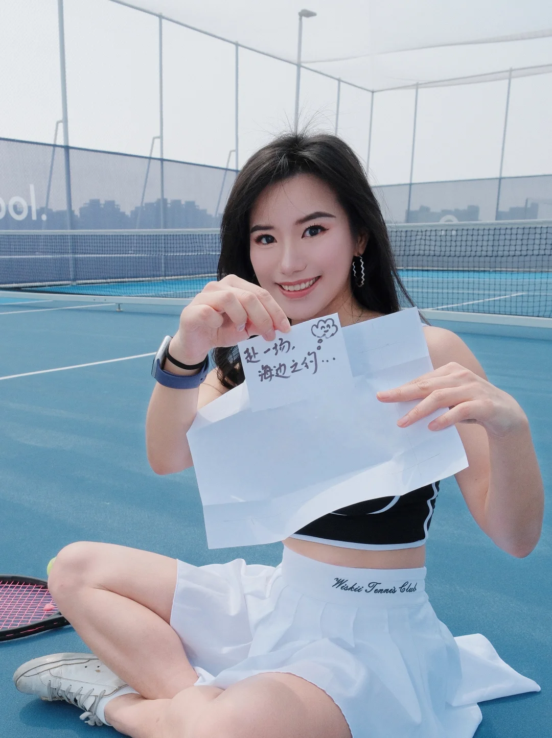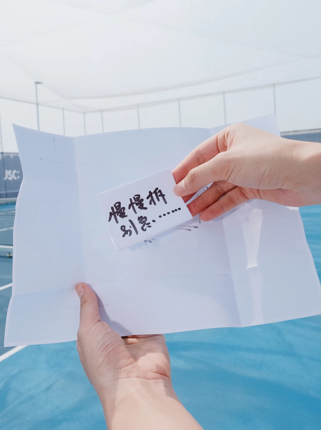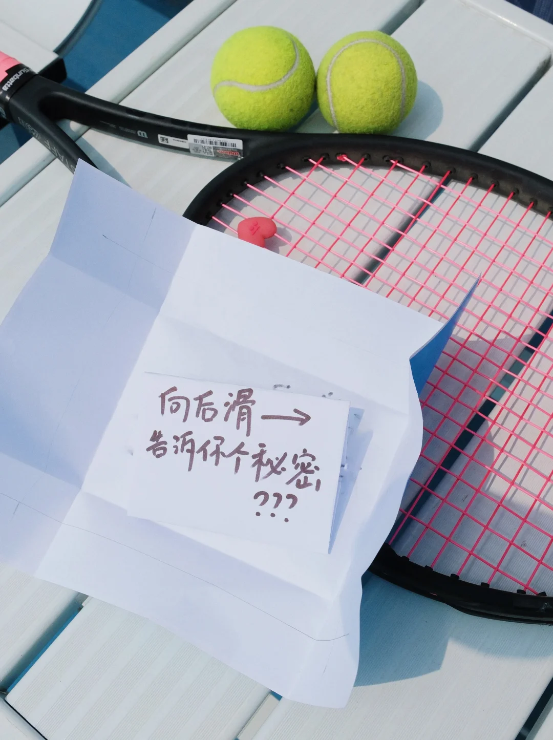 我在网球场!捡到个纸条💥发现了好消息…