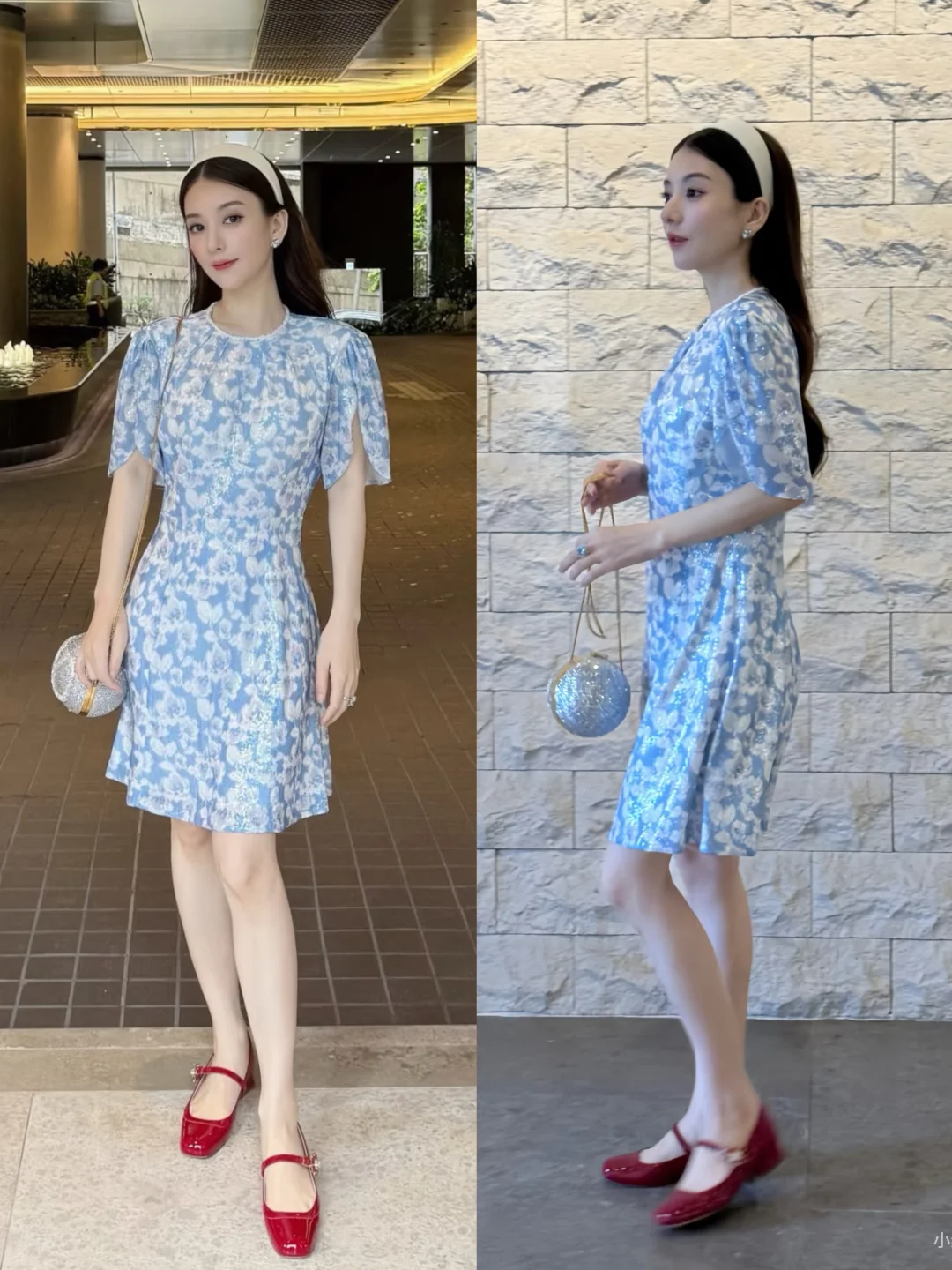 私服的风格依旧是熟悉的千金风格,粉色花内搭白色针织与小耳钉,温柔高级,一整套带钻的小针织套装,不需要怎么费劲,就能搭出富家千金风!