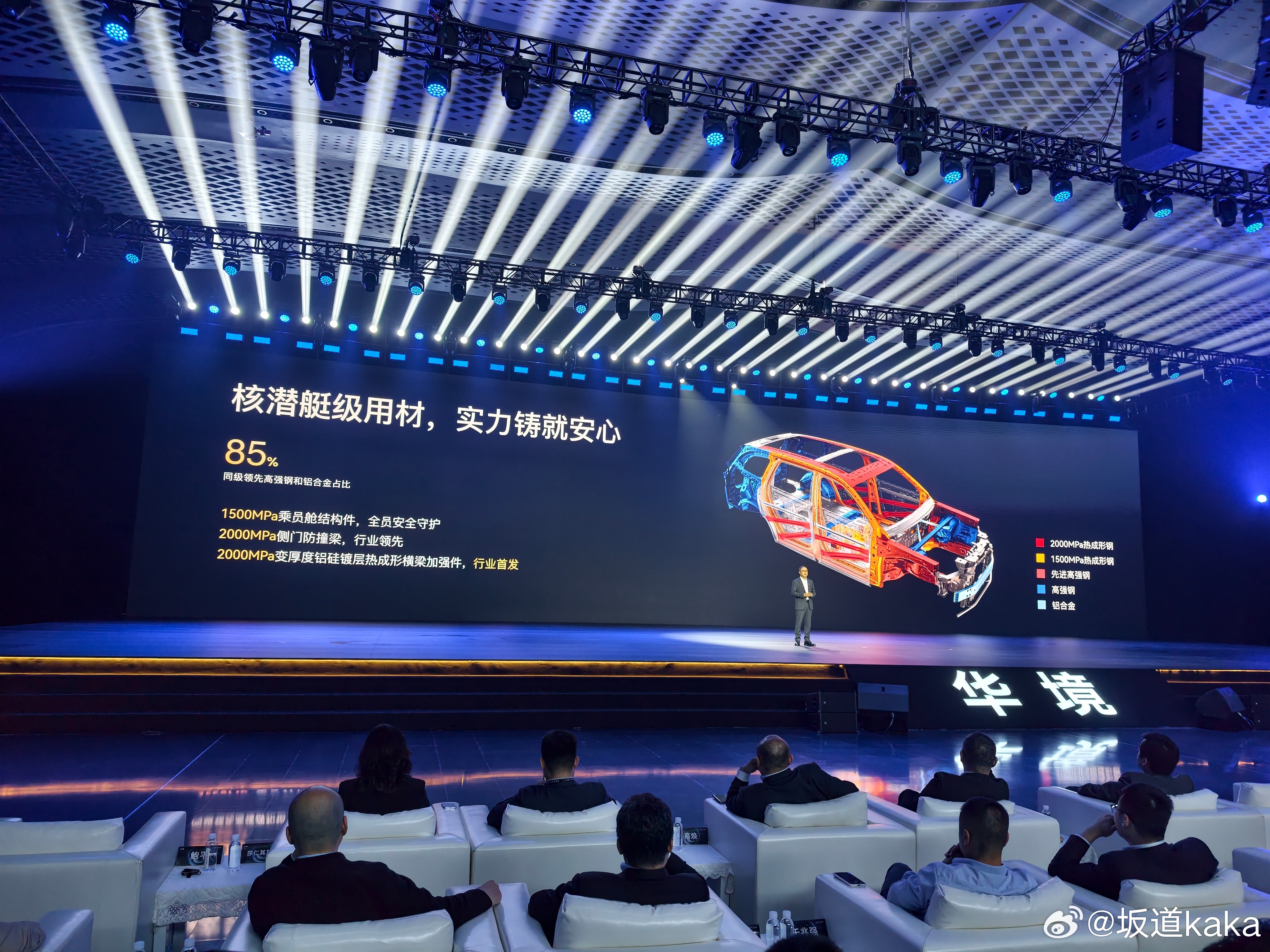 最硬核的我觉得还得是宝钢的大佬,参数上说的是华境S有85%高强度钢材。2000Mpa用在车身地板和车门防撞梁上。