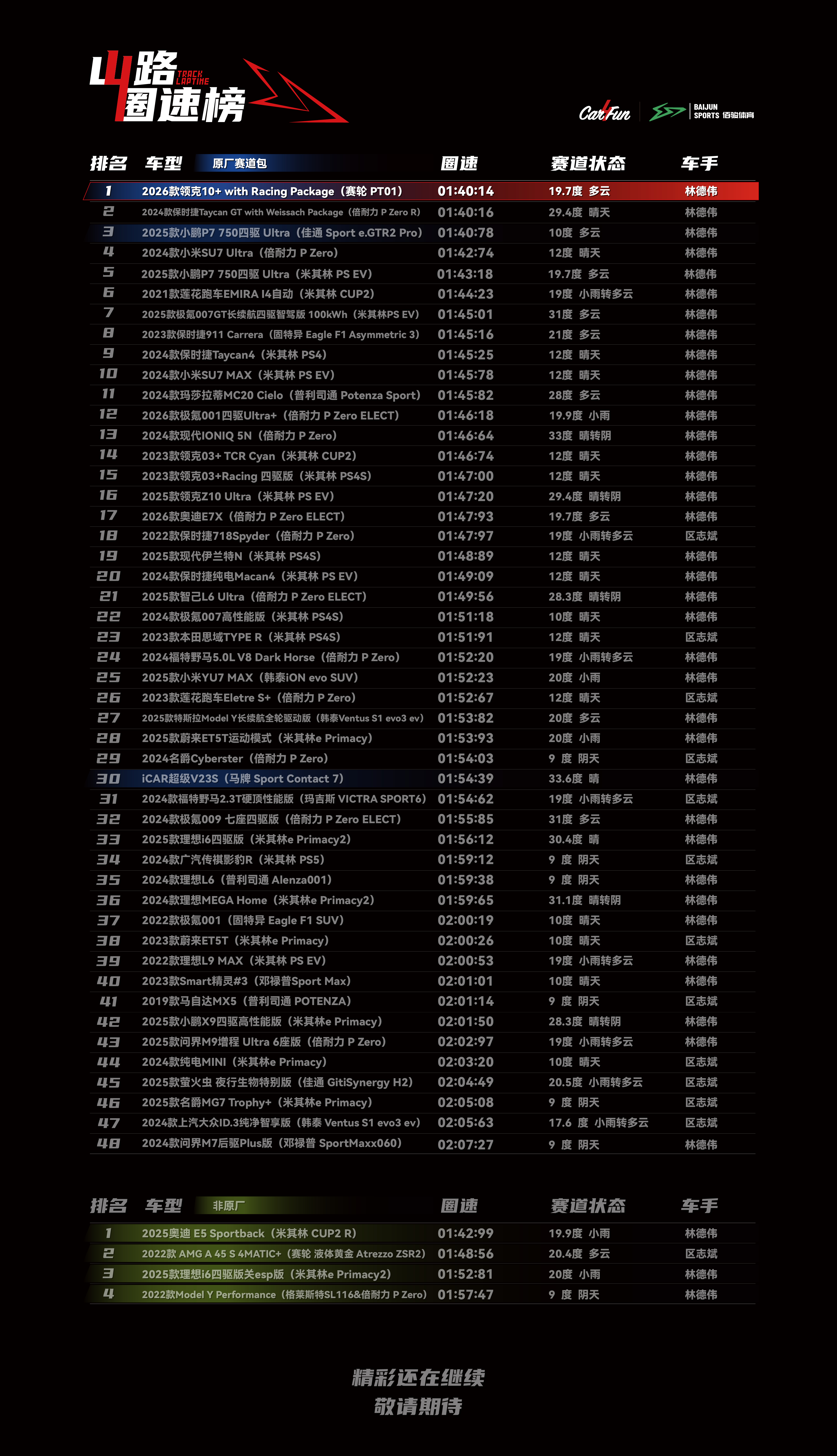 2️⃣领克10+以925匹马力、零百3.2秒、官方性能套件的赋能下,山路圈速超越保时捷Taycan GT,登顶“弯道之王”。